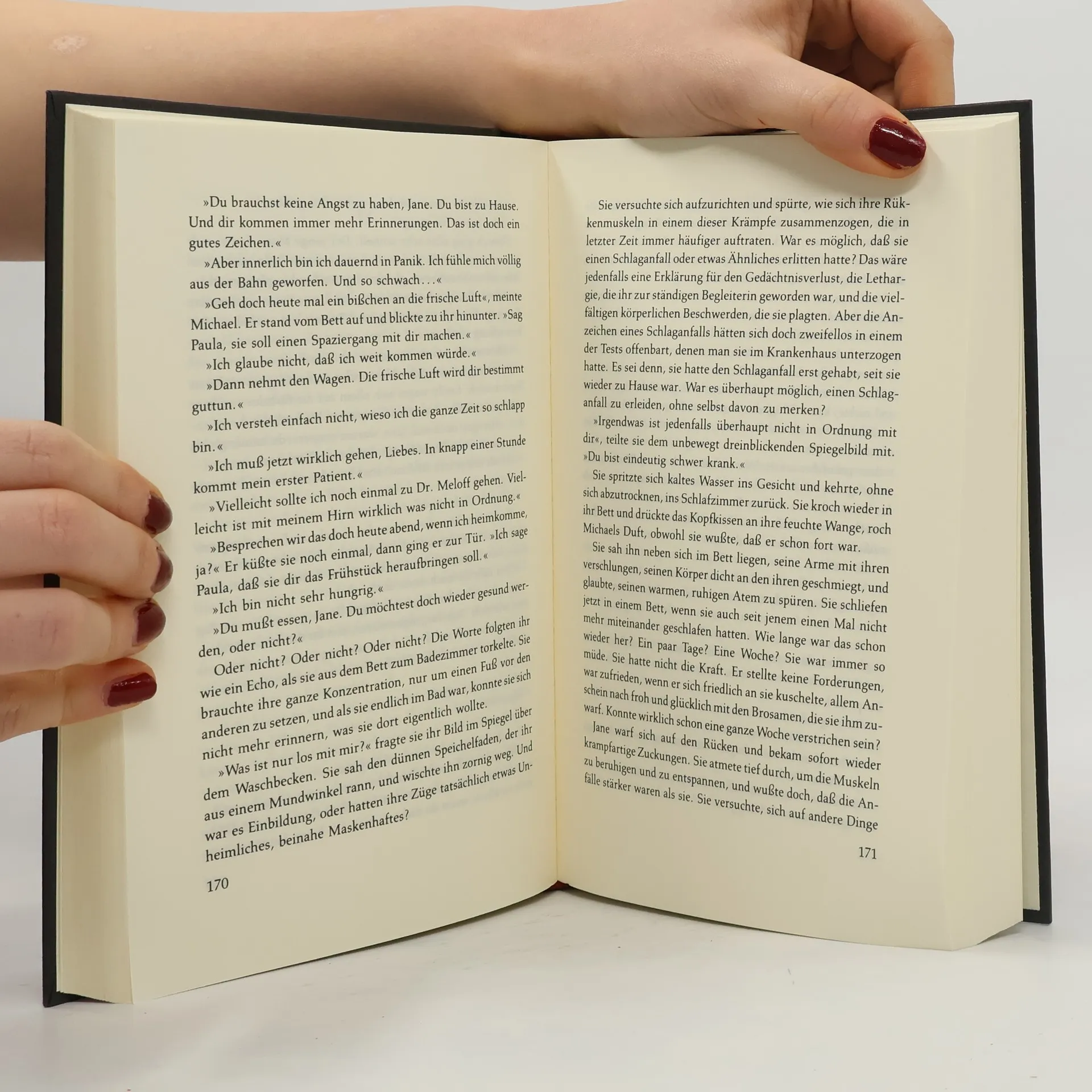 „An einem Nachmittag im Frühsommer ging Jane Whittaker zum Einkaufen und vergaß, wer sie war…“ So beginnt der Alptraum einer Frau, die sich plötzlich blutbefleckt, die Taschen voller Geld und ohne Erinnerungsvermögen auf den Straßen Bostons wiederfindet. Wer ist dieser Mann, den man ihr als ihren Ehemann vorstellt? Was sind das für Medikamente, die ihr angeblich helfen sollen? Und warum fühlt sie sich als Gefangene im eigenen Haus? Verzweifelt kämpft Jane von nun an um ihr Gedächtnis – es wird ein Kampf auf Leben und Tod …