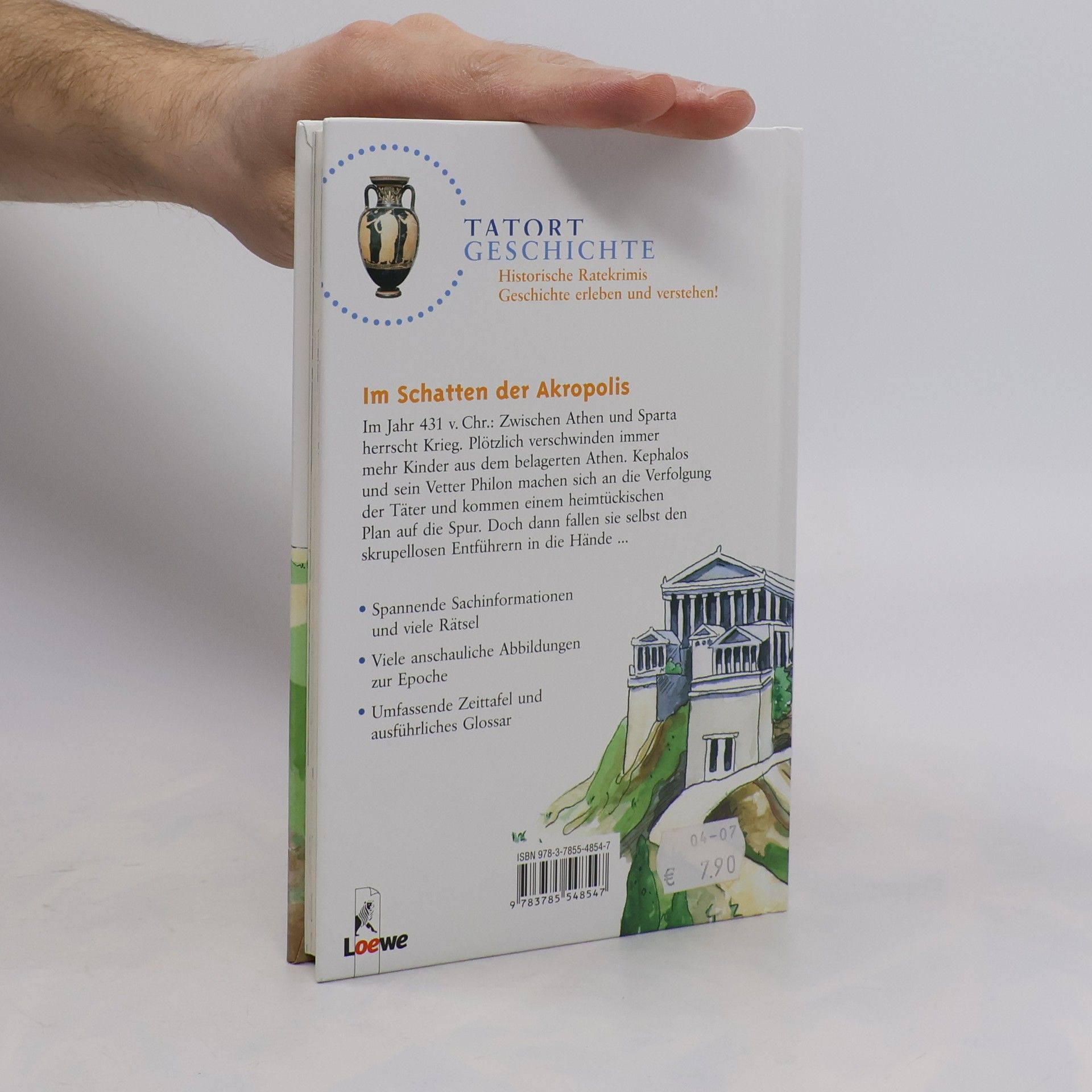 Im Jahr 431 v. Chr.: Zwischen Athen und Sparta herrscht Krieg. Plötzlich verschwinden immer mehr Kinder aus dem belagerten Athen. Kephalos und sein Vetter Philon machen sich an die Verfolgung der Täter und kommen einem heimtückischen Plan auf die Spur. Doch dann fallen sie selbst den skrupellosen Entführern in die Hände ... · Spannende Sachinformationen und viele Rätsel · Viele anschauliche Abbildungen zur Epoche · Umfassende Zeittafel und ausführliches Glossar