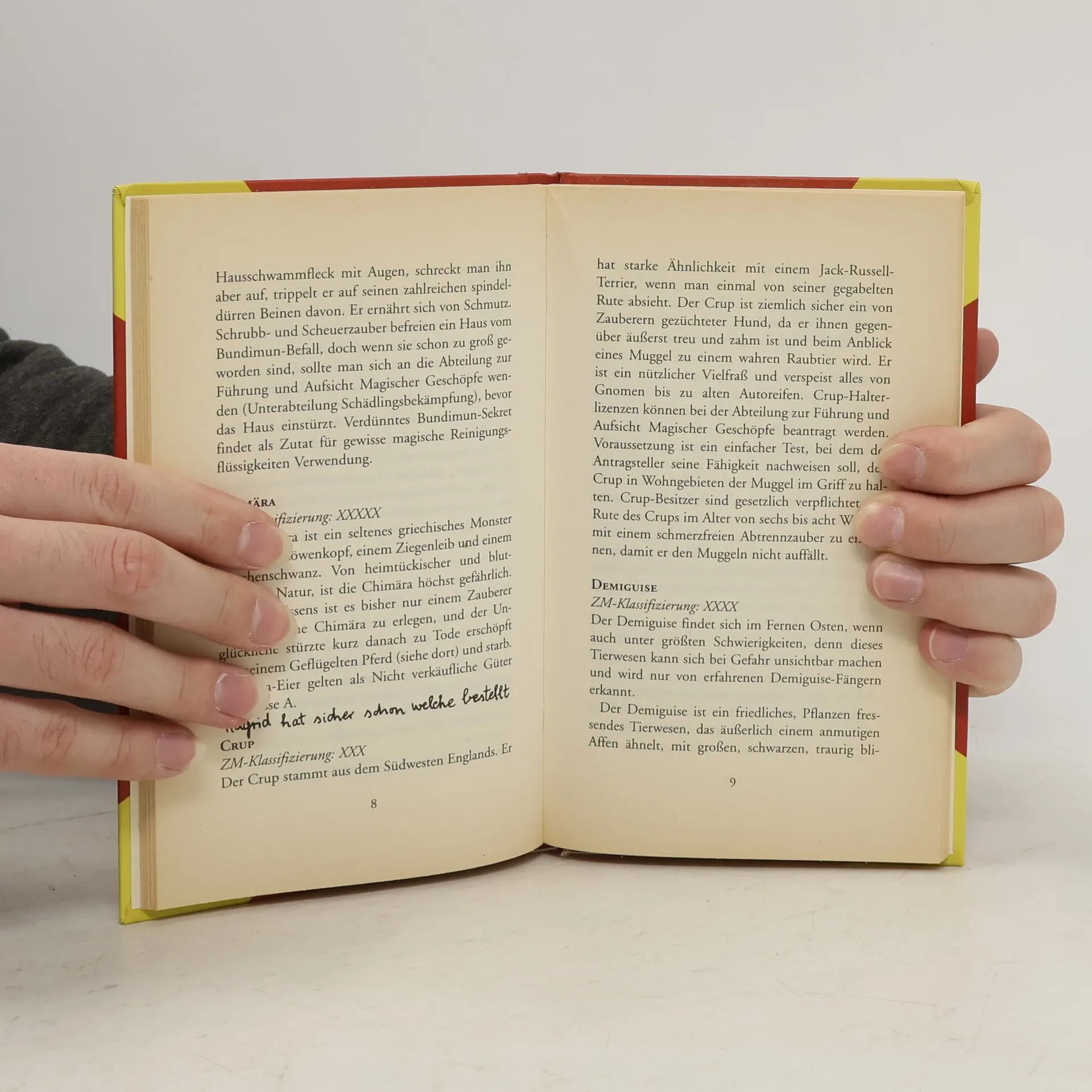 Eines der ersten Lehrbücher auf der Zauberschule Hogwarts. Diese Ausgabe gehörte Harry Potter persönlich und ist mit handschriftlichen Kommentaren von ihm und seinen Freunden versehen. Den Hauptteil des Buches bildet ein Verzeichnis fast aller Tier- und Zauberwesen aus der magischen Welt mit Beschreibungen zu Aussehen, Verhalten und Lebensraum - von der Acromantula bis zum Zentaur. Außerdem wird auf ihre Verwertbarkeit für magische Zwecke eingegangen.