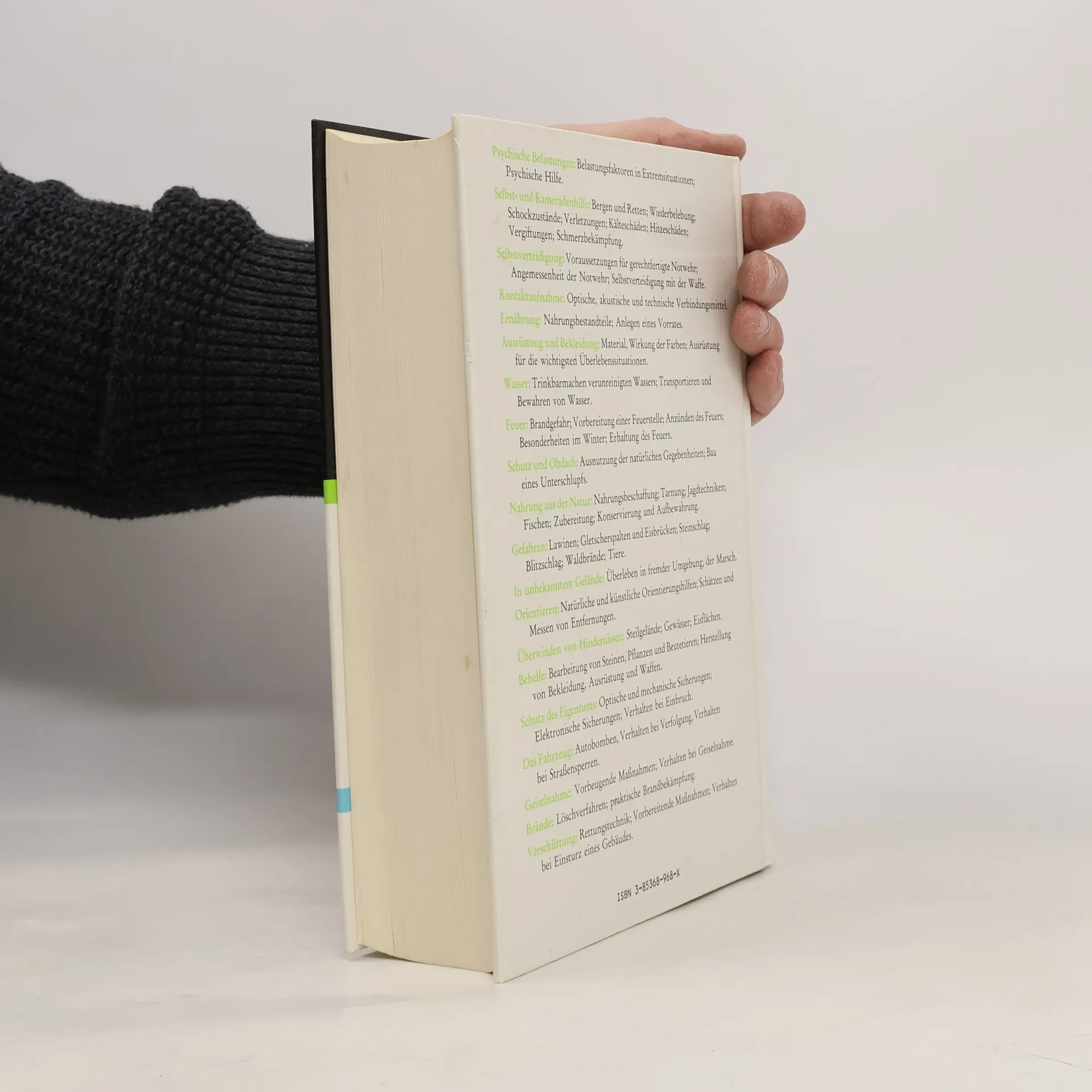Das umfassende Nachschlagewerk für alle, die sich in Ausnahmesituationen rasch richtig verhalten und durchsetzen wollen Das große Buch der Überlebenstechniken beschäftigt sich mit dem Überleben in Extremsituationen, dem Überleben in der Natur und dem Überleben in der Zivilisation. Jegliche Art von Situationen, in die ein Mensch kommen kann, sind hier aufgezeigt, und es gibt eine Menge Tipps und Ratschläge, wie man sich dann verhalten soll. So wird beispielsweise dem abenteuerlustigen Reisenden eine Anleitung zur Wassergewinnung gegeben oder er erfährt, wie man sich einen schlechtwettertauglichen Unterschlupf baut. Für alle, die sich die vielen Gefahrensituationen nicht so recht vorstellen können, gibt es ausreichend Skizzenmaterial. Selbst Themen wie Selbstverteidigung und das Auffinden einer Autobombe werden nicht ausgelassen. Das Survival-Standardwerk! Ein Muss.