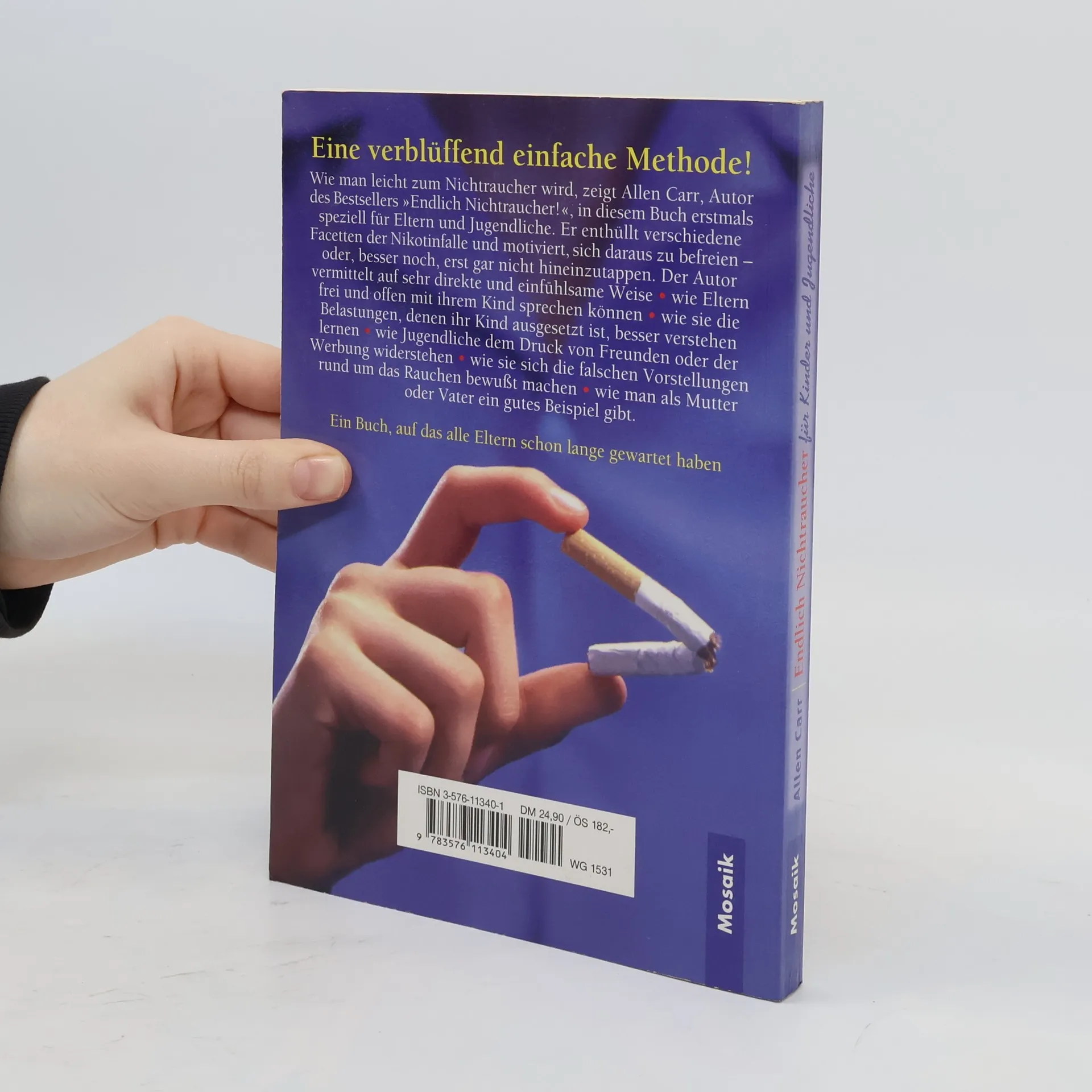 Nach meiner persönlichen Erfahrung mit dem Buch, kann ich nur eines sagen. Ausgezeichnet!!!! Wer ernsthaft aufhören will zu rauchen wird es mit Sicherheit helfen komplett rauchfrei zu werden . Ich war vor 22 Jahren Raucher und wollte aufhören. Mit diesem Buch schaffte ich es Recht einfach, da es ausgezeichnet geschrieben ist. Es wird einleuchtend erklärt warum man süchtig ist und wie man mit Überzeugung davon weg kommt. Und es funktioniert. Nur ein wichtiger Tipp. Bist du von rauchen weg, fass nie wieder eine Zigarette an, ansonsten geht's von vorne los und die Sucht ist doppelt so stark wie vorher. Auch nur bei einem zug als Neugier... Der Autor, als ehemaliger Kettenraucher weiß wovon er spricht. Das Buch hat auch vielen meiner Kollegen geholfen rauchfrei zu werden. Aber, denken sie daran; nur wenn sie es auch ernsthaft wollen ist es dieses Buch eine exzellente Wahl.