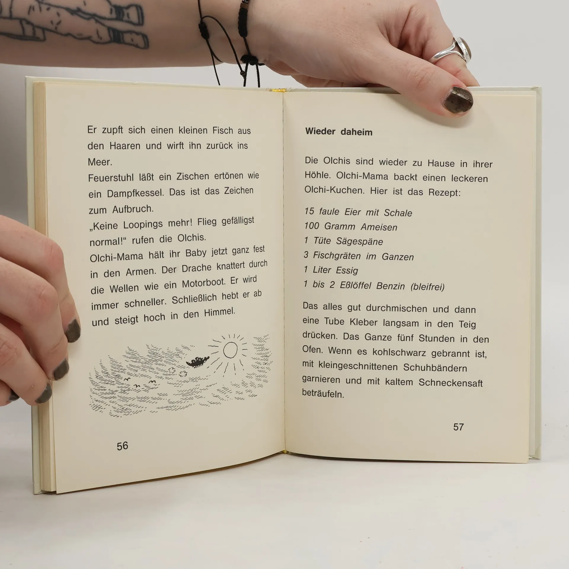 Olchis, koboldartige Wesen, tummeln sich am liebsten im Unrat der Müllhalden. Auch wenn Oma Angst vor der unbekömmlich fischen Seeluft hat, die Olchi-Kinder freuen sich auf die Reise ans Meer.