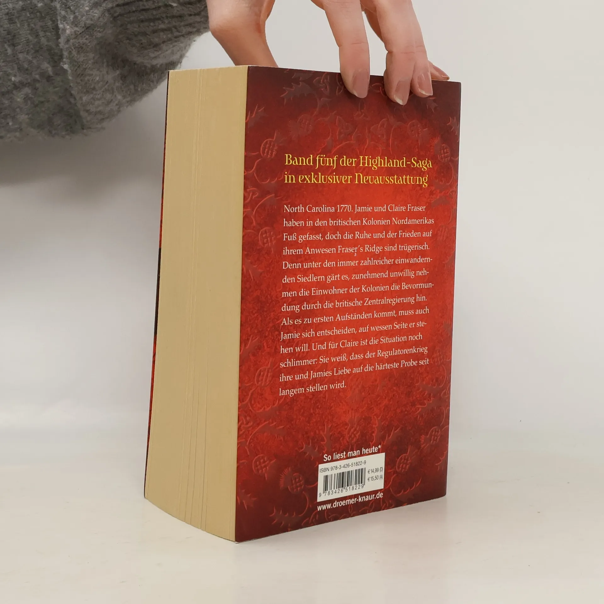North Carolina 1770. Jamie und Claire Fraser haben in den britischen Kolonien Nordamerikas Fuß gefasst, doch die Ruhe und der Frieden auf ihrem Anwesen Fraser’s Ridge sind trügerisch. Denn unter den immer zahlreicher einwandernden Siedlern gärt es, immer unwilliger nehmen die Einwohner der Kolonien die Bevormundung durch die britische Zentralregierung hin. Als es zu ersten Aufständen kommt, muss auch Jamie sich entscheiden, auf wessen Seite er stehen will. Und für Claire ist die Situation noch schlimmer: Sie weiß, dass die Unabhängigkeitskriege ihre und Jamies Liebe auf die härteste Probe seit Langem stellen werden.