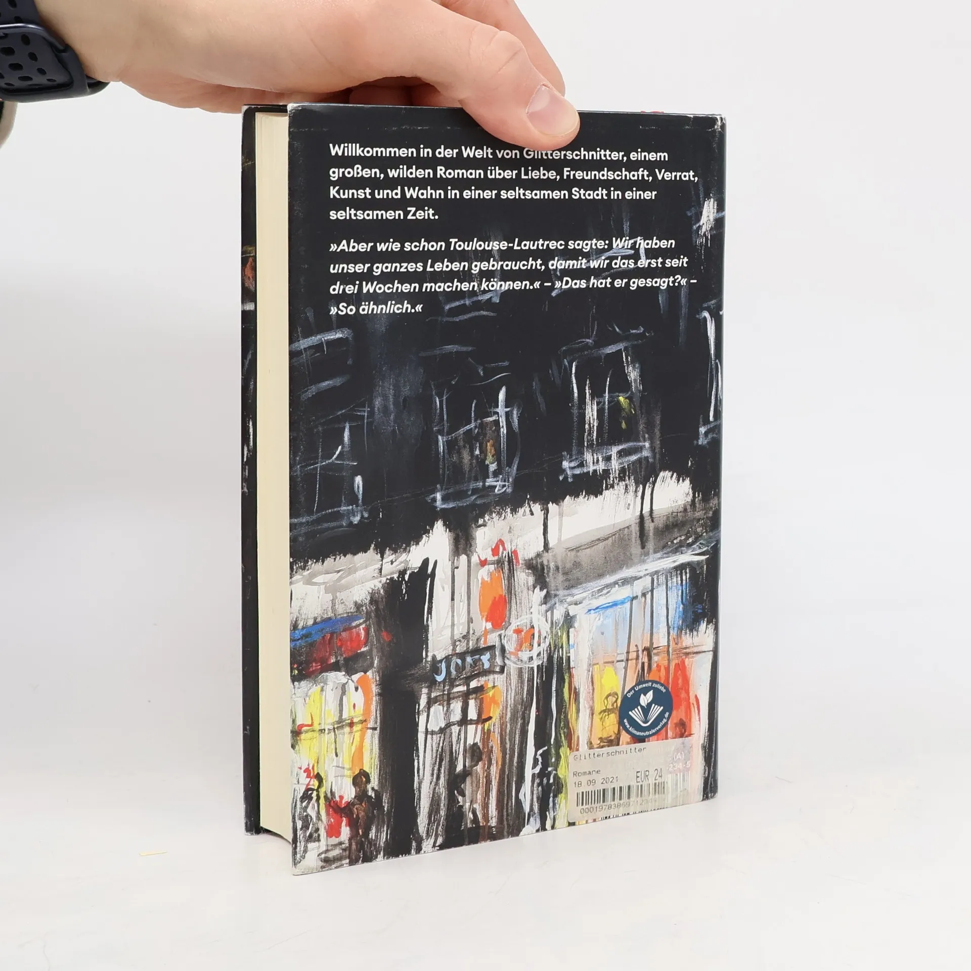 Willkommen in der Welt von Glitterschnitter: Ein großer, wilder Roman über Liebe, Freundschaft, Verrat, Kunst und Wahn in einer seltsamen Stadt in einer seltsamen Zeit. Die Lage ist prekär: Charlie, Ferdi und Raimund wollen mit Glitterschnitter den Weg zum Ruhm beschreiten, aber es braucht mehr als eine Bohrmaschine, ein Schlagzeug und einen Synthie, um auf die Wall City Noise zu kommen. Wiemer will, dass H. R. ein Bild malt, aber der will lieber eine Ikea-Musterwohnung in seinem Zimmer aufbauen. Frank und Chrissie wollen die alte Trinkerstube Café Einfall zur kuchenbefeuerten Milchkaffeehölle umgestalten, aber Erwin will lieber einen temporären Schwangerentreff etablieren. Chrissie will, dass Kerstin endlich zurück nach Stuttgart geht, aber die muss erst noch Chrissies neuen Schrank an der Wand befestigen. Die Frage, ob Klaus zwei verschiedene Platzwunden oder zweimal dieselbe Platzwunde zugefügt wurde, ist noch nicht abschließend geklärt, aber bei den Berufsösterreichern der ArschArt-Galerie werden bereits schöne Traditionen aus der Zeit der 1. Ottakringer Shakespeare-Kampfsportgesellschaft wiederbelebt. »Aber wie schon Toulouse-Lautrec sagte: wir haben unser ganzes Leben gebraucht, damit wir das erst seit drei Wochen machen können.« – »Das hat er gesagt?« – »So ähnlich.« Ferdi und Raimund von Glitterschnitter