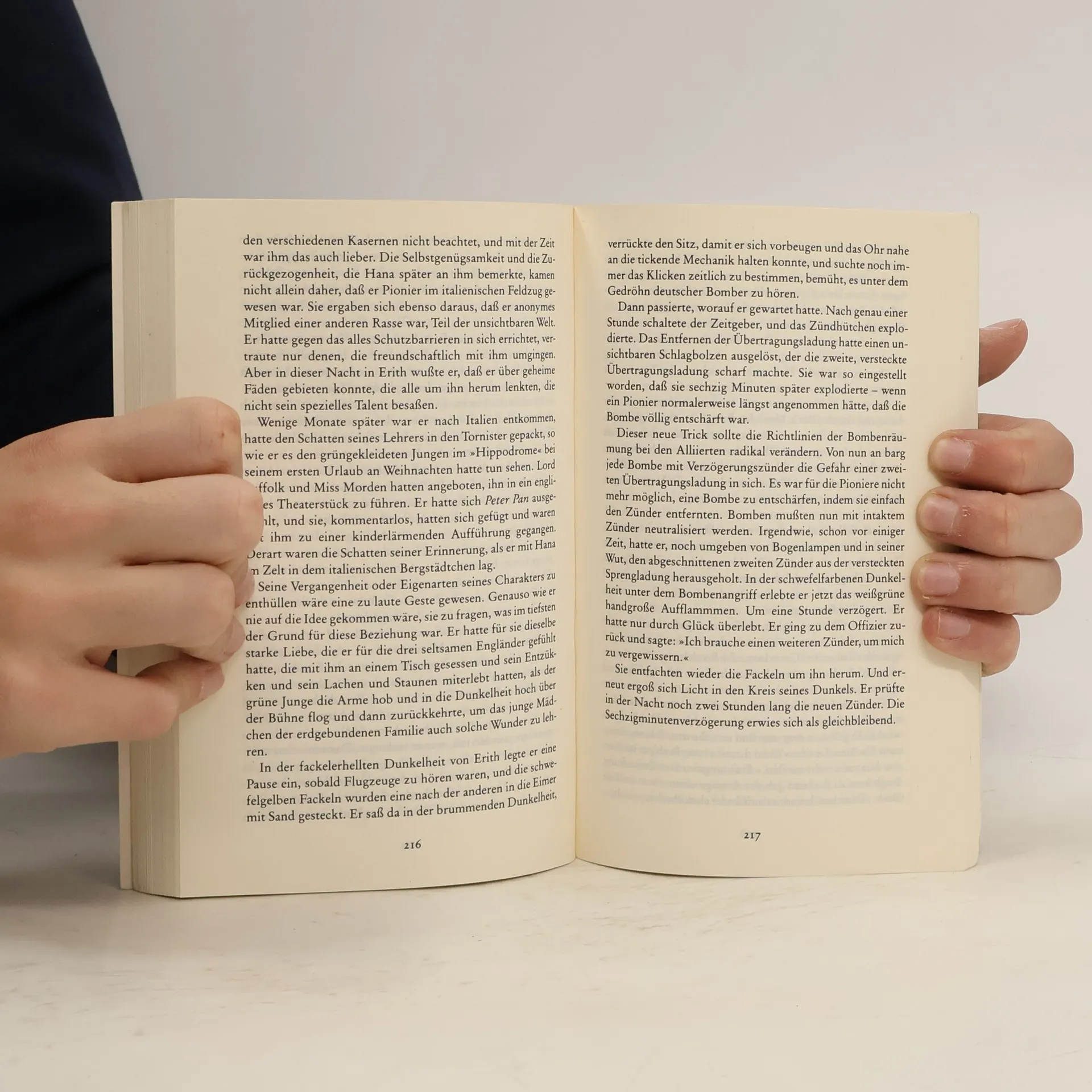 Die Zeit scheint in Michael Ondaatjes Roman aufgehoben, und doch erzählt er vom Ende der alten und dem Entstehen einer neuen Welt. Gegen Ende des Zweiten Weltkriegs treffen in einer zerbombten Villa in der Nähe von Florenz vier Menschen unterschiedlicher Nationalität zusammen, zwischen denen ein eigenartiges Beziehungsgeflecht entsteht. Jeder der vier, drei Männer und eine Frau, sie ist Krankenschwester, erfindet sich eine eigene Welt. Doch im Laufe der Zeit offenbart sich ihr Innenleben und ihre wahre Geschichte.