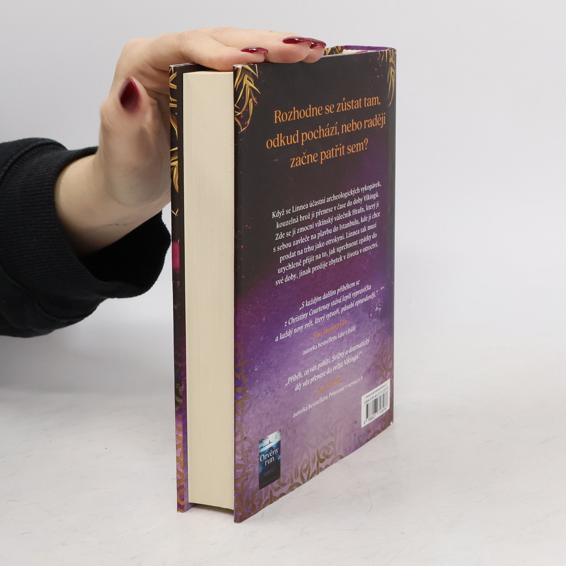 Oddat se svému nadšení pro jazyk Vikingů a nechat se pohltit prací na archeologických vykopávkách je přesně to pravé, co Linnea Bergerová po nedávné traumatické události potřebuje. Když objeví krásnou brož a přečte nápis, který je na ni vyrytý, ztratí vědomí a probere se uprostřed skupiny mužů převlečených za Vikingy, kteří podle všeho berou svou hru na středověk velice vážně.Ztracená a zmatená Linnea se ocitne v moci Hrafna, vikinského válečníka, který si ji nárokuje jako svou kořist a zavleče ji na nebezpečnou plavbu přes moře, aby ji prodal jako otrokyni. Po vyplutí musí čelit nemyslitelnému: cestovala časem a ocitla se v devátém století.Linnea je rozhodnutá vrátit se zpátky do svojí doby, ale mezi ní a Hrafnem se začíná utvářet pouto. Dokáže odolat volání run a přijmout, že její osud je tady?