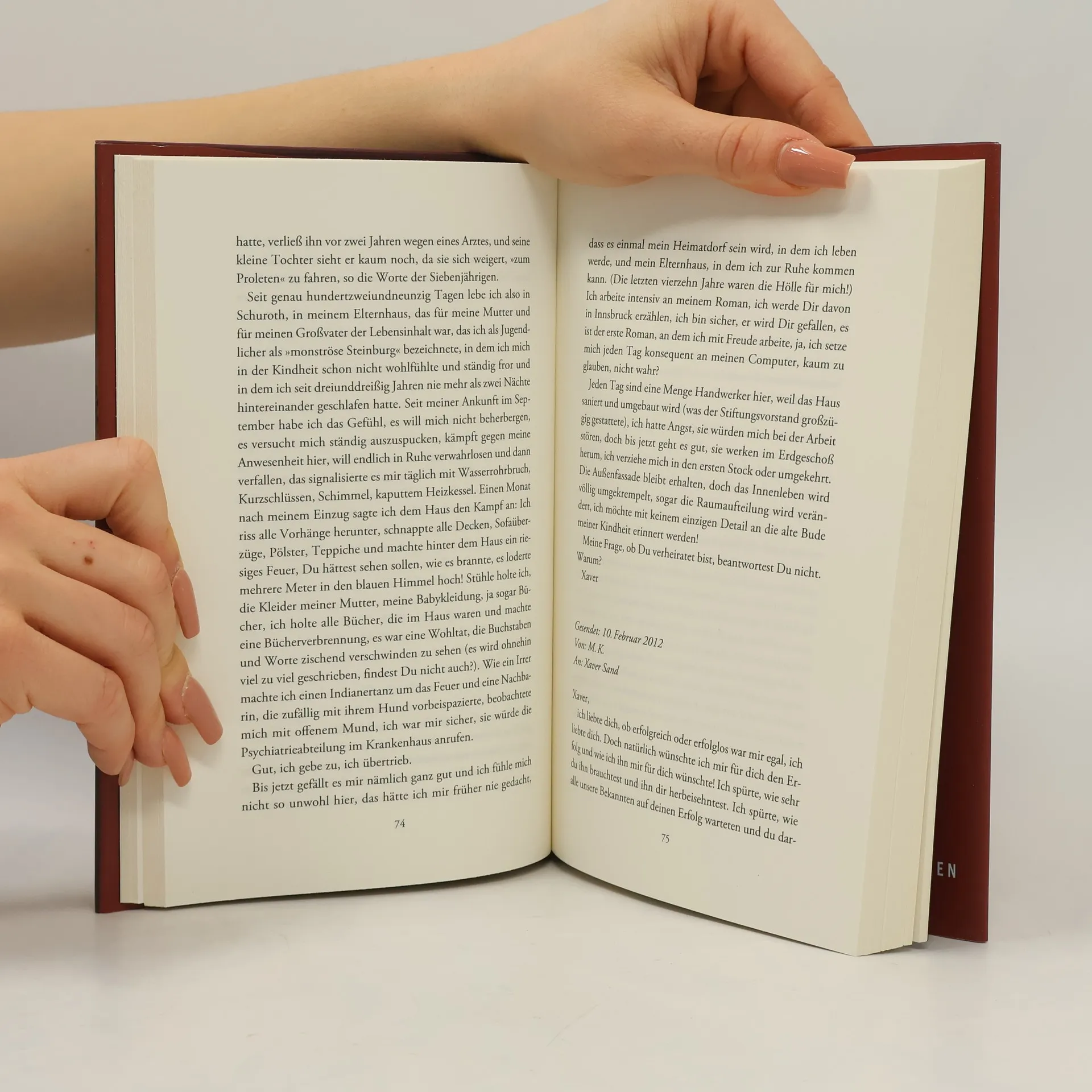 Mathildas große Liebe, Xaver, hat sie verlassen. Eines Tages, einfach so, hat er alle seine Sachen gepackt und ist grußlos verschwunden. Mathilda erleidet einen Nervenzusammenbruch und erholt sich nur langsam, da das Rätsel um Xavers Motive sie nicht loslässt. Nach über sechzehn Jahren scheint sie nun ihren Platz im Leben gefunden zu haben: Sie ist Deutschlehrerin in einer anderen Stadt, beliebt bei ihren Schülern, sie hat Freundinnen und ein eigenes Leben. Da taucht Xaver, inzwischen gefeierter Jugendbuchautor, plötzlich wieder auf, und die beiden rekapitulieren sowohl ihre Beziehung als auch deren Ende. Die Geburt von Xavers Sohn nur wenige Monate nach der Trennung, dessen Entführung und der nicht geklärte Verbleib des Jungen wird zum Angelpunkt der Begegnung der einstmals Liebenden. Immer weiter spinnen sie ihre Vorstellungen, Ängste und Fantasien, bis am Ende keiner mehr vom anderen weiß, ob er die Wahrheit sagt: Hat Mathilda Xavers Sohn entführt? Hat Xaver mehr mit dem Verschwinden seines Sohnes zu tun, als er zugibt? Ein vielschichtiger Psychothriller, raffiniert, irritierend und bis zum letzten Moment fesselnd.