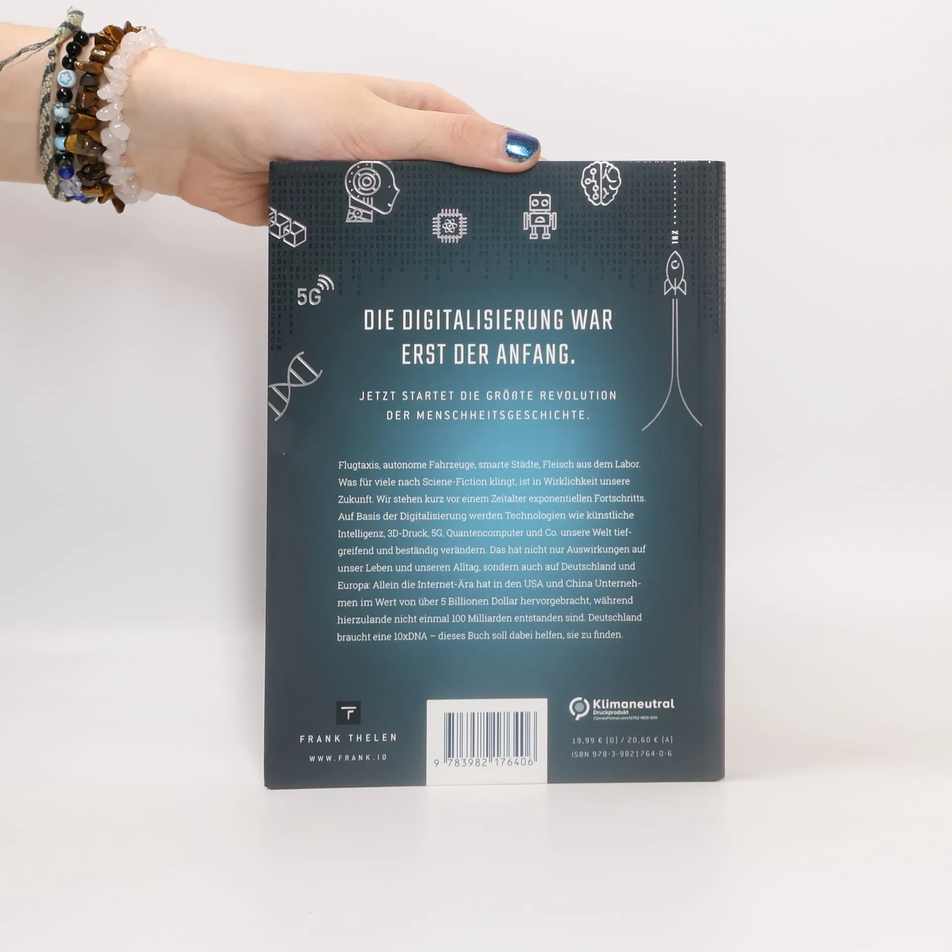 Die Digitalisierung war erst der Anfang. Jetzt startet die größte Revolution der Menschheitsgeschichte. Flugtaxis, autonome Fahrzeuge, 3D-gedruckte Häuser, Fleisch aus dem Labor – was nach Science-Fiction klingt, ist bereits Realität. Wir stehen an der Schwelle eines neuen Zeitalters: Auf der Basis der Digitalisierung werden Technologien wie künstliche Intelligenz, 3D-Druck, 5G, Quantencomputer und synthetische Biologie unsere Welt tiefgreifend verändern. Das hat Auswirkungen auf unser Leben und unseren Alltag und beeinflusst auch die wirtschaftliche und politische Zukunft Deutschlands und Europas. Allein die Internet-Ära hat in den USA und China Unternehmen im Wert von über 5 Billionen Dollar hervorgebracht, während hierzulande nicht einmal 100 Milliarden Euro Wert geschaffen wurden. Das Zeitalter des exponentiellen Fortschritts bringt unfassbare Chancen. Deutschland braucht jetzt dringend eine 10xDNA, um diese Chancen zu ergreifen! Dieses Buch wird dich inspirieren. Es erklärt verständlich die neuen Technologien und zeigt mit konkreten Beispielen, wie sich unser Leben verändern wird. Es will die Angst vor Neuem nehmen und stattdessen zielführend auf die Zukunft vorbereiten. Starte dein Leben in 10x!