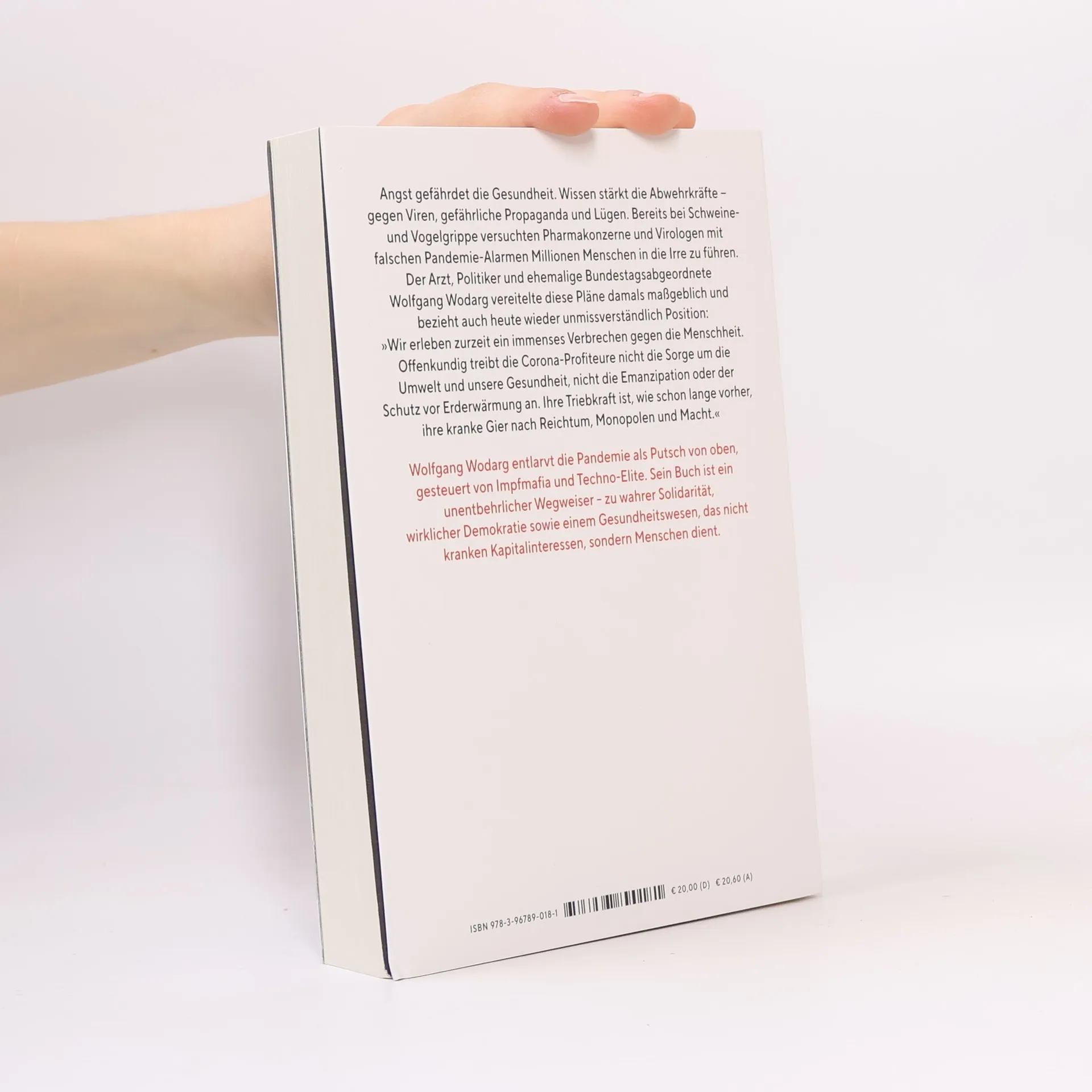 Angst gefährdet die Gesundheit. Wissen stärkt die Abwehrkräfte ― gegen Viren, gefährliche Propaganda und Lügen. Bereits bei Schweine- und Vogelgrippe versuchten Pharmakonzerne und Virologen mit falschen Pandemie-Alarmen Millionen Menschen in die Irre zu führen. Der Arzt, Politiker und ehemalige Bundestagsabgeordnete Wolfgang Wodarg vereitelte diese Pläne damals maßgeblich und bezieht auch heute wieder unmissverständlich Position: »Wir erleben zurzeit ein immenses Verbrechen gegen die Menschheit. Offenkundig treibt die Corona-Profiteure nicht die Sorge um die Umwelt und unsere Gesundheit, nicht die Emanzipation oder der Schutz vor Erderwärmung an. Ihre Triebkraft ist, wie schon lange vorher, ihre kranke Gier nach Reichtum, Monopolen und Macht.« Wolfgang Wodarg entlarvt die Pandemie als Putsch von oben, gesteuert von Impfmafia und Techno-Elite. Sein Buch ist ein unentbehrlicher Wegweiser ― zu wahrer Solidarität, wirklicher Demokratie sowie einem Gesundheitswesen, das nicht kranken Kapitalinteressen, sondern Menschen dient.