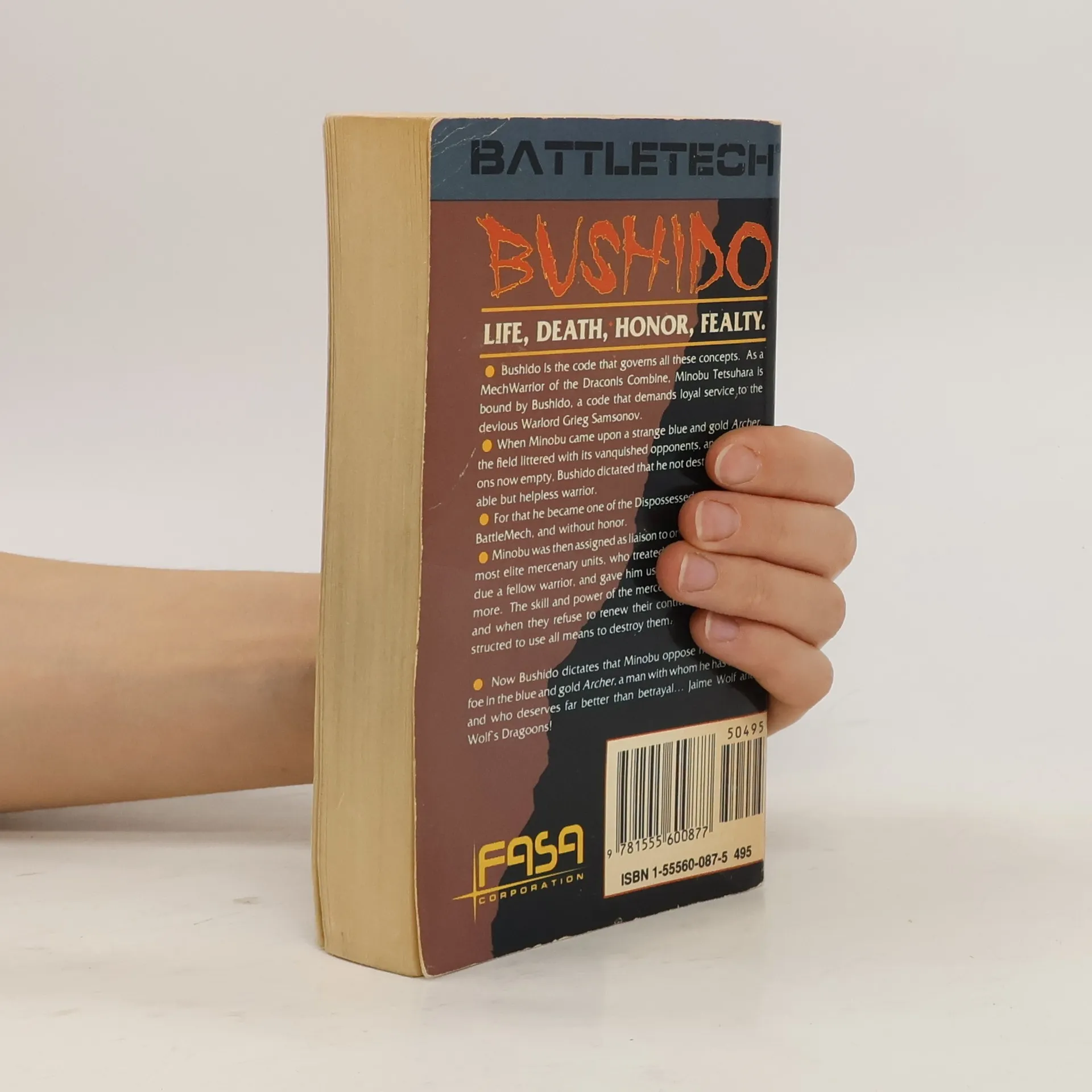 Bushido governs all these concepts. As a MechWarrior of the Draconis Combine, Minobu Tetsuhara was bound b Bushido - a code that demands loyal service - to the devious Warlord Grieg Samsonov. But when Minobu came upon a strange blue-and-gold Archer, the field littered with its vanquished opponents and its weapons now empty, Bushido also dictated that he not destroy the honorable but helpless warrior. And so he rescued Jaime Wolf. Minobu was then assigned as liaison to the Wolf's Dargoons, one of the Combine's most elite mercenary units, who treated him with the respect due a fellow warrior. When the mercenaries refused to renew their contract with Samsonov, Minobu was instructed to destroy them. Now Bushido dictates that Minobu oppose his honorable foe, a man with whom he has served and who deserves far better than betrayal...