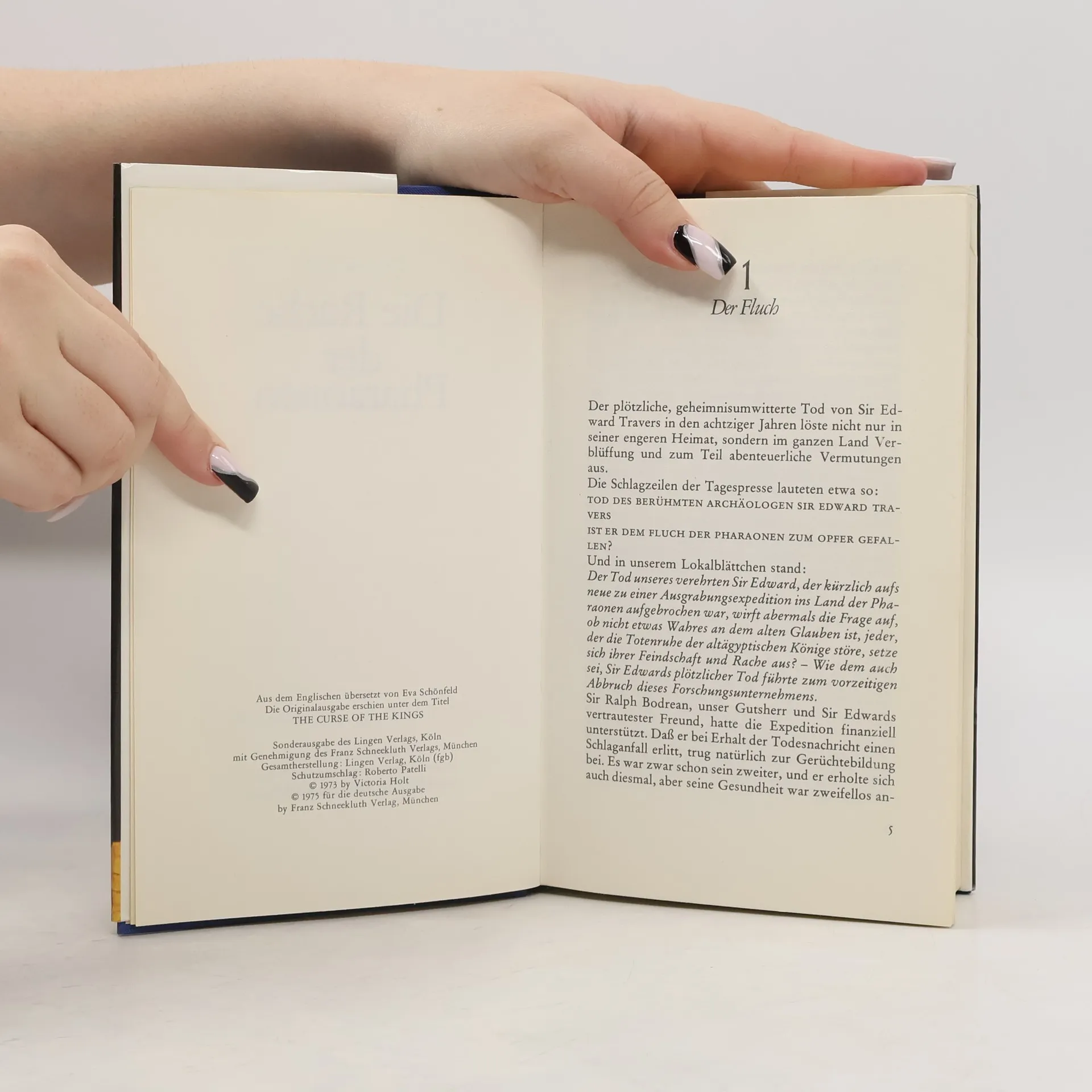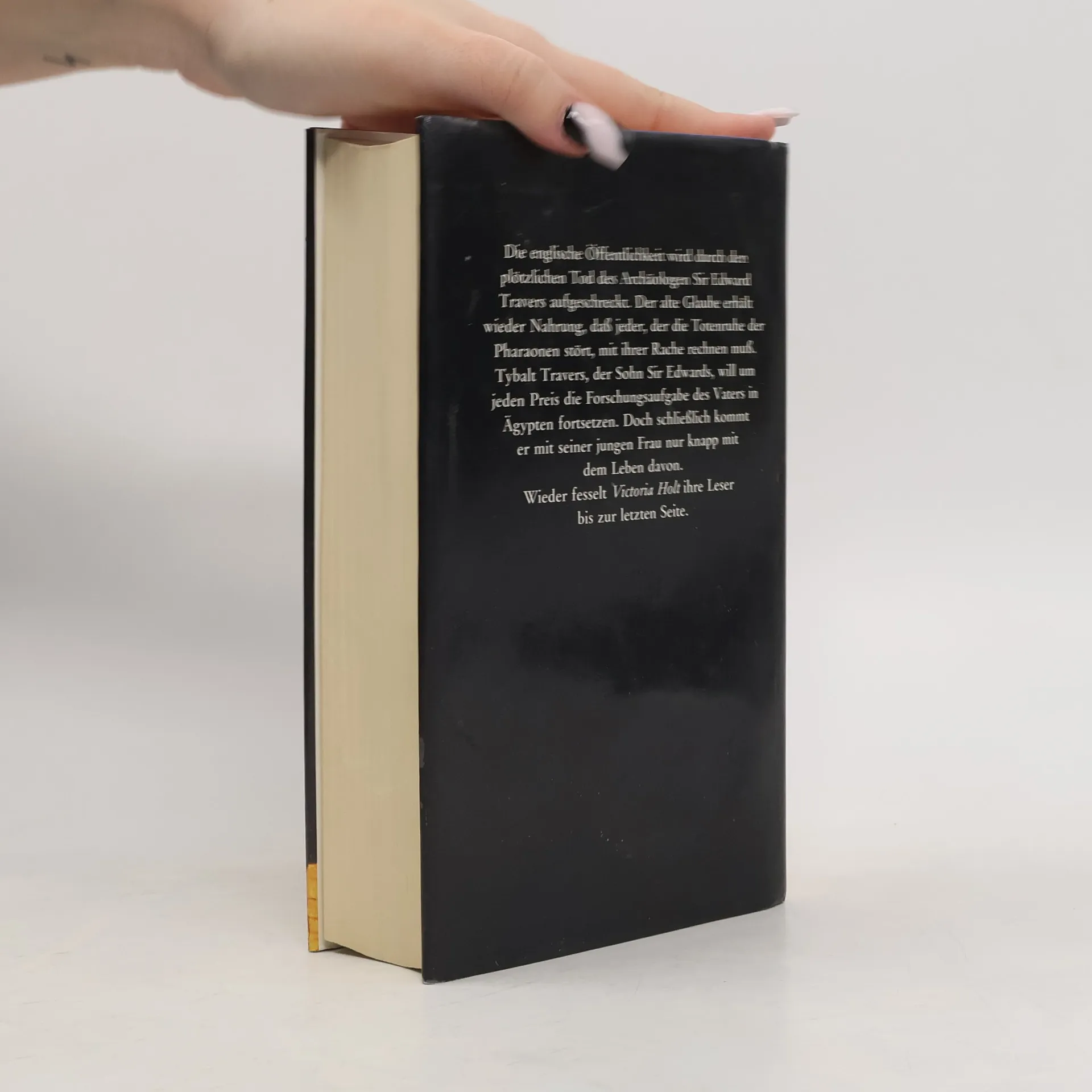Tybalt Travers, ein leidenschaftlicher Archäologe, will die Ausgrabungsarbeiten seines toten Vaters vollenden. Er bricht mit seiner jungen Frau und einigen Helfern nach Ägypten auf. In den dunklen Grabhöhlen der Pyramiden sind seltsame Dinge geschehen, die er mit wissenschaftlichen Mitteln erklären will. Doch gegen die Rache der Pharaonen und ihren tödlichen Fluch scheint auch sein genialer Verstand machtlos. Hilflos muss er mitansehen, wie sich die Geister der Pharaonen seiner Frau bemächtigen ... Victoria Holt, die Meistererzählerin des Unheimlichen, verbindet in diesem aufregenden Roman ein Höchstmaß an Spannung mit einer romantischen Handlung, die den Leser bis zur letzten Seite fesselt.