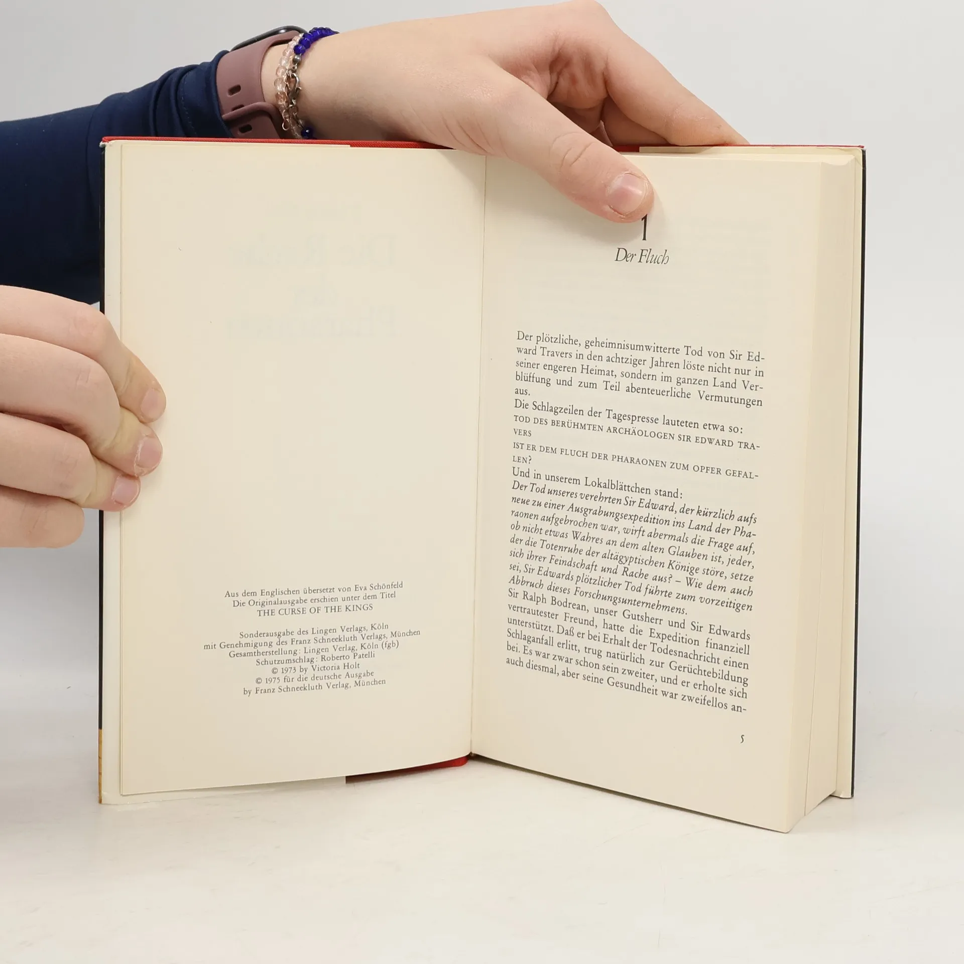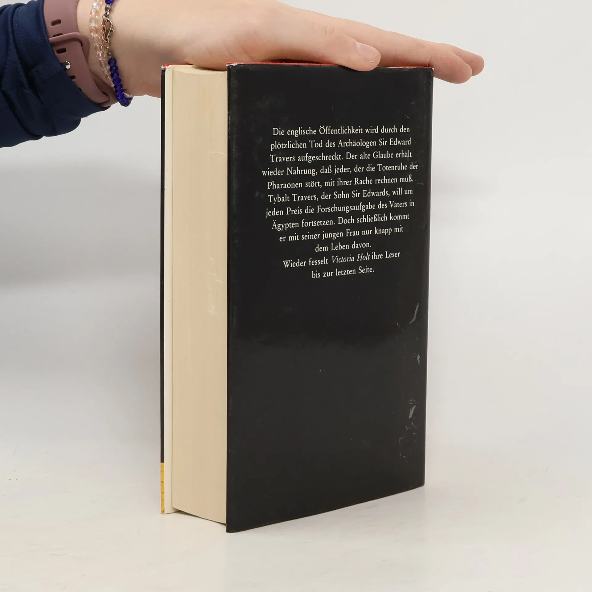 Tybalt Travers, ein leidenschaftlicher Archäologe, will die Ausgrabungsarbeiten seines toten Vaters vollenden. Er bricht mit seiner jungen Frau und einigen Helfern nach Ägypten auf. In den dunklen Grabhöhlen der Pyramiden sind seltsame Dinge geschehen, die er mit wissenschaftlichen Mitteln erklären will. Doch gegen die Rache der Pharaonen und ihren tödlichen Fluch scheint auch sein genialer Verstand machtlos. Hilflos muss er mitansehen, wie sich die Geister der Pharaonen seiner Frau bemächtigen ... Victoria Holt, die Meistererzählerin des Unheimlichen, verbindet in diesem aufregenden Roman ein Höchstmaß an Spannung mit einer romantischen Handlung, die den Leser bis zur letzten Seite fesselt.