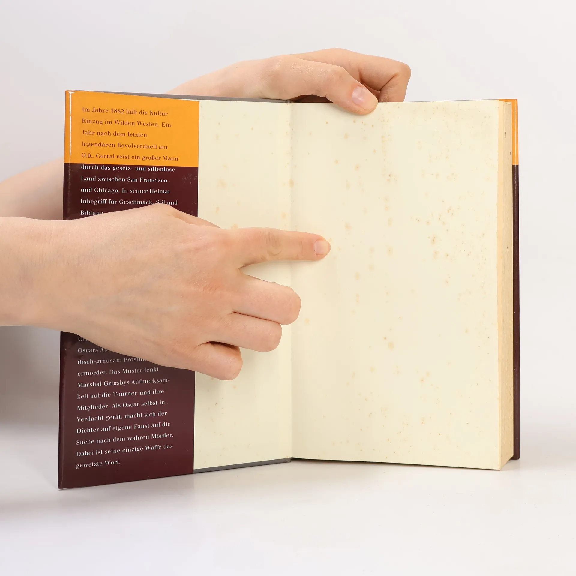Im Jahre 1882 hält die Kultur Einzug im Wilden Westen. Oscar Wilde, in seiner Heimat Inbegriff von Geschmack, Stil und Bildung, begibt sich auf eine triumphale Lese- und Vortragsreise durch das gesetz- und sittenlose Land zwischen San Francisco und Chicago. Begleitet wird er von Journalisten, Schülern, Spielern, Profitgeiern und schönen Bewunderern beiderlei Geschlechts - und von einem Mörder: Denn in den Orten und an den Abenden von Oscars Auftritten werden Prostituierte auf immer die gleiche methodisch-grausame Art ermordet. Als der Dichter selbst in Verdacht gerät, nimmt er auf eigene Faust Ermittlungen auf...