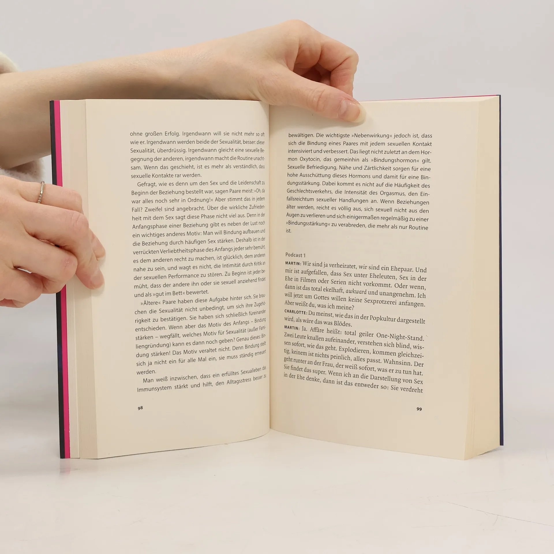 Wie schafft man es, glücklich eine lange Beziehung zu führen? Charlotte Roche und Martin Keß-Roche sagen: Indem man redet. Wie das geht, zeigen sie in ihrem Podcast – und jetzt auch in diesem Buch. Es geht um die zentralen Themen, die jedes Paar umtreiben: Liebe nach der Verliebtheit, Sex, Eifersucht, Geld, Zuhören, Kinderkriegen und -haben, Erziehung, Lust, Fremdgehen. Die unbedingte Ehrlichkeit der Roches führt einen bald zu der entlastenden Erkenntnis : (Fast) alle Paare haben die gleichen Probleme . Und man kann sie lösen. Für ihr Buch haben die beiden die Themen des Podcasts geordnet und neu aufbereitet , die Paartherapeutin »Dr. Amalfi« gibt weitergehende Informationen.