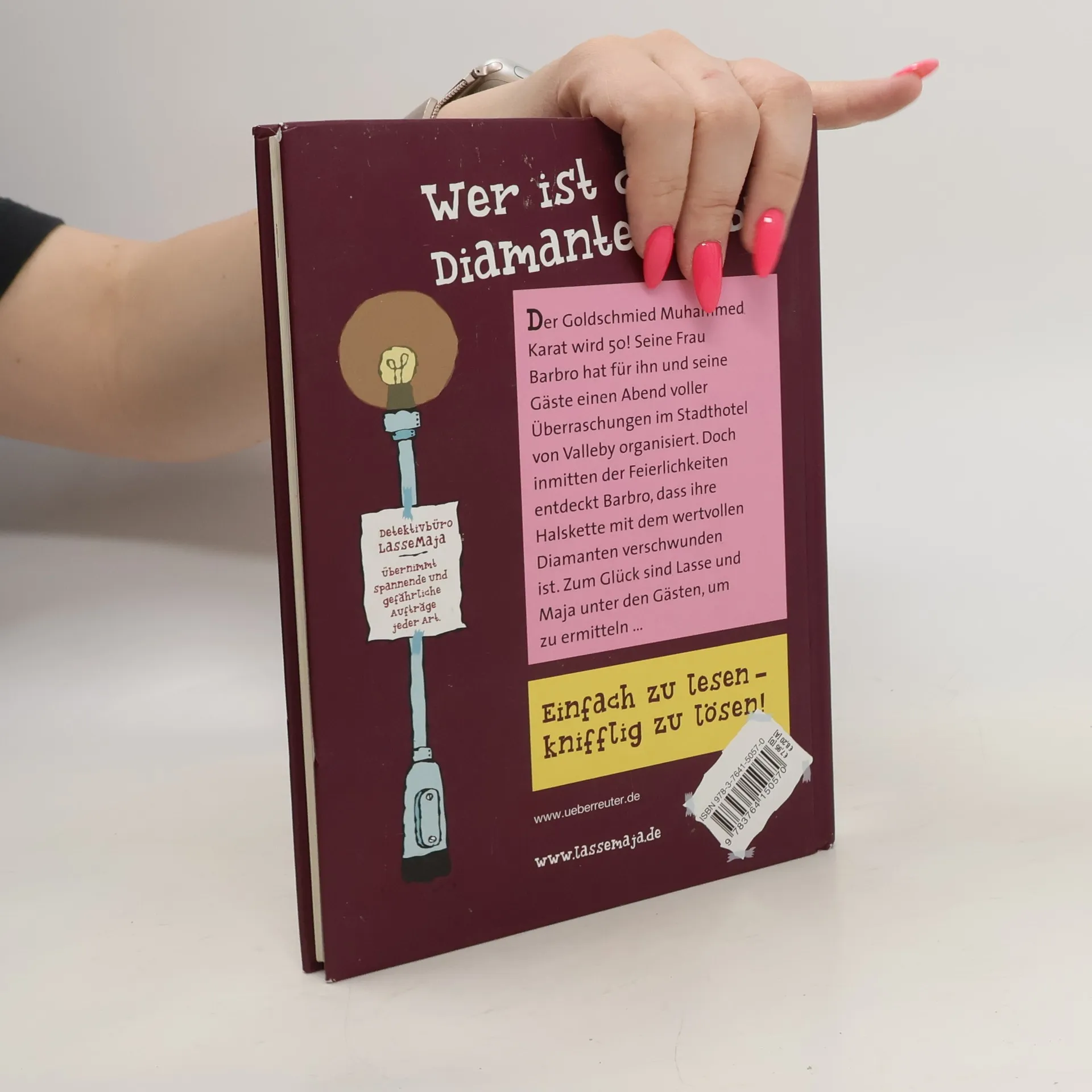Der Goldschmied Muhammed Karat wird 50! Seine Frau Barbro hat für ihn und seine Gäste einen Abend voller Überraschungen im Stadthotel von Valleby organisiert. Doch inmitten der Feierlichkeiten entdeckt Barbro, dass ihre Halskette mit dem wertvollen Diamanten verschwunden ist. Zum Glück sind Lasse und Maja unter den Gästen, um zu ermitteln ... Einfach zu lesen - knifflig zu lösen!
