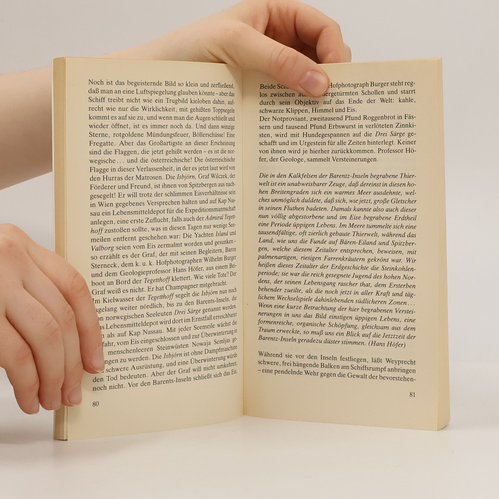 Im Zentrum dieses vielschichtigen Abenteuerromans steht das Schicksal der österreichisch-ungarischen Nordpolexpedition der »Payer-Weyprecht-Expedition«, die im arktischen Sommer 1872 in das unerforschte Meer nordöstlich des sibirischen Archipels Nowaja Semlja aufbricht. Das Expeditionsschiff wird bald - und für immer - vom Packeis eingeschlossen. Nach einer mehr als einjährigen Drift durch alle Schrecken des Eises und der Finsternis entdeckt die vom Skorbut geplagte Mannschaft eine unter Gletschern begrabene Inselgruppe am Rande der Welt und tauft sie zu Ehren eines fernen Herrschers »Kaiser-Franz-Joseph-Land«. Einer der letzten blinden Flecke ist damit von der Landkarte der Alten Welt getilgt.Parallel zum Drama dieser historischen Expedition erzählt Ransmayr die Geschichte eines jungen, in Wien lebenden Italieners namens Mazzini, der mehr als hundert Jahre später zum besessenen Sammler aller hinterlassenen Zeugnisse und Dokumente der »Payer-Weyprecht-Expedition« wird und schließlich ins Eismeer aufbricht, um als Passagier eines norwegischen Forschungsschiffes die Entdeckung des »Franz-Joseph-Landes« nachzuvollziehen. Aber im Verlauf seiner Recherchen zur polaren Entdeckungsgeschichte gerät Mazzini immer tiefer in die arktische Gegenwart und verschwindet schließlich, ein Schlittenreisender, in den Gletscherlandschaften Spitzbergens.