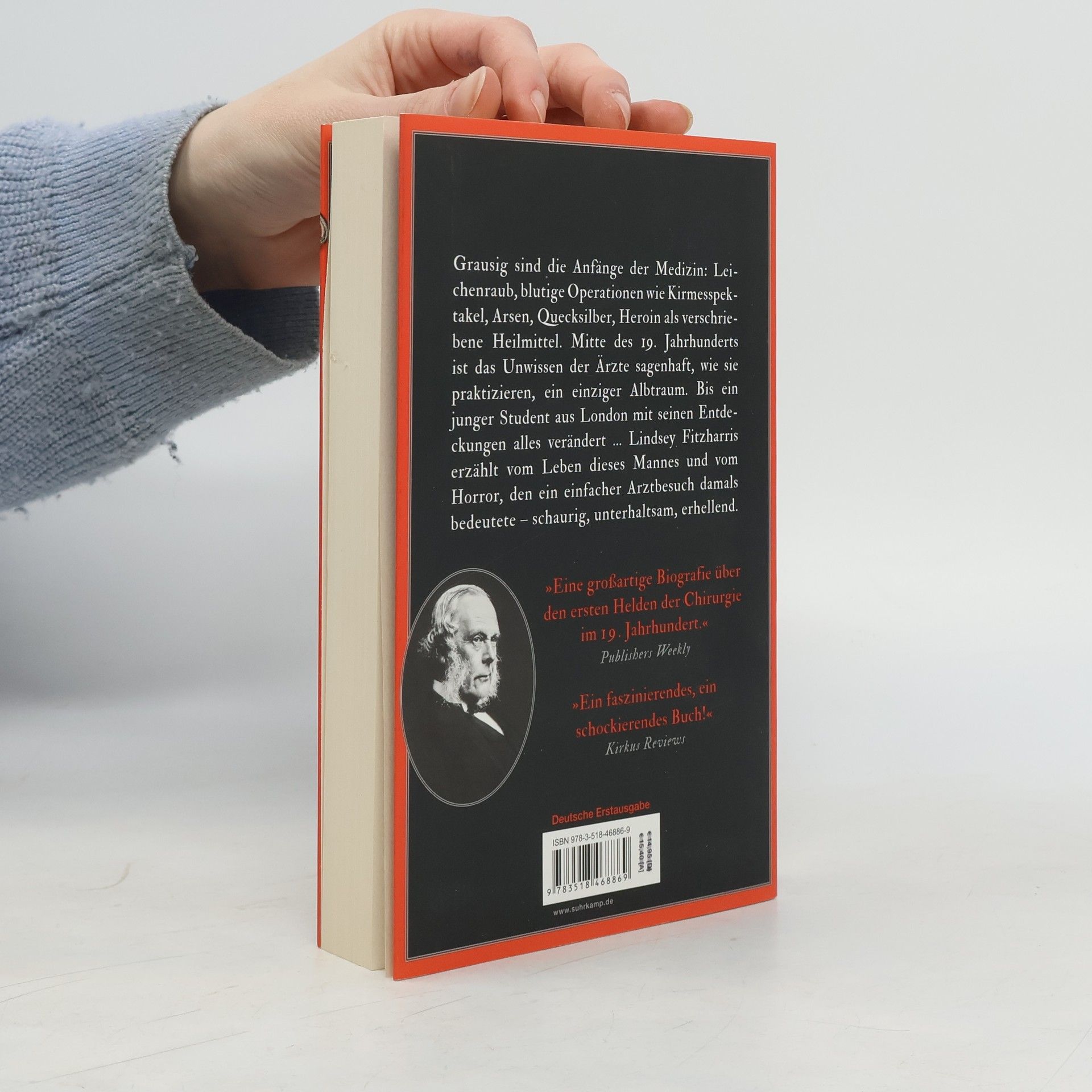 Grausig sind die Anfänge der Medizin: Leichenraub, blutige Operationen wie Kirmesspektakel, Arsen, Quecksilber, Heroin als verschriebene Heilmittel. Mitte des 19. Jahrhunderts ist das Unwissen der Ärzte sagenhaft, wie sie praktizieren, ein einziger Albtraum. Bis ein junger Student aus London mit seinen Entdeckungen alles verändert … Lindsey Fitzharris erzählt vom Leben dieses Mannes und vom Horror, den ein einfacher Arztbesuch damals bedeutete – schaurig, unterhaltsam, erhellend. Als Joseph Lister 1844 sein Studium in London beginnt, ist die medizinische Versorgung der Bevölkerung desaströs: Die Krankenhäuser sind überfüllt und verseucht. Um aufgenommen zu werden, müssen Patienten genug Geld für die eigene Beerdigung mitbringen. In den Operationssälen arbeiten Chirurgen in Straßenklamotten vor schaulustigem Publikum. Warum fast alle Patienten sterben, wie sich Krankheiten ausbreiten, darüber herrscht nicht die geringste Einigkeit, nur hanebüchene Theorien. Joseph Lister wird dann Chirurg, er will ganz praktisch helfen. Und von Neugier und hellem Verstand geleitet, entwickelt er eine Methode, die das Sterben vielleicht beenden kann …