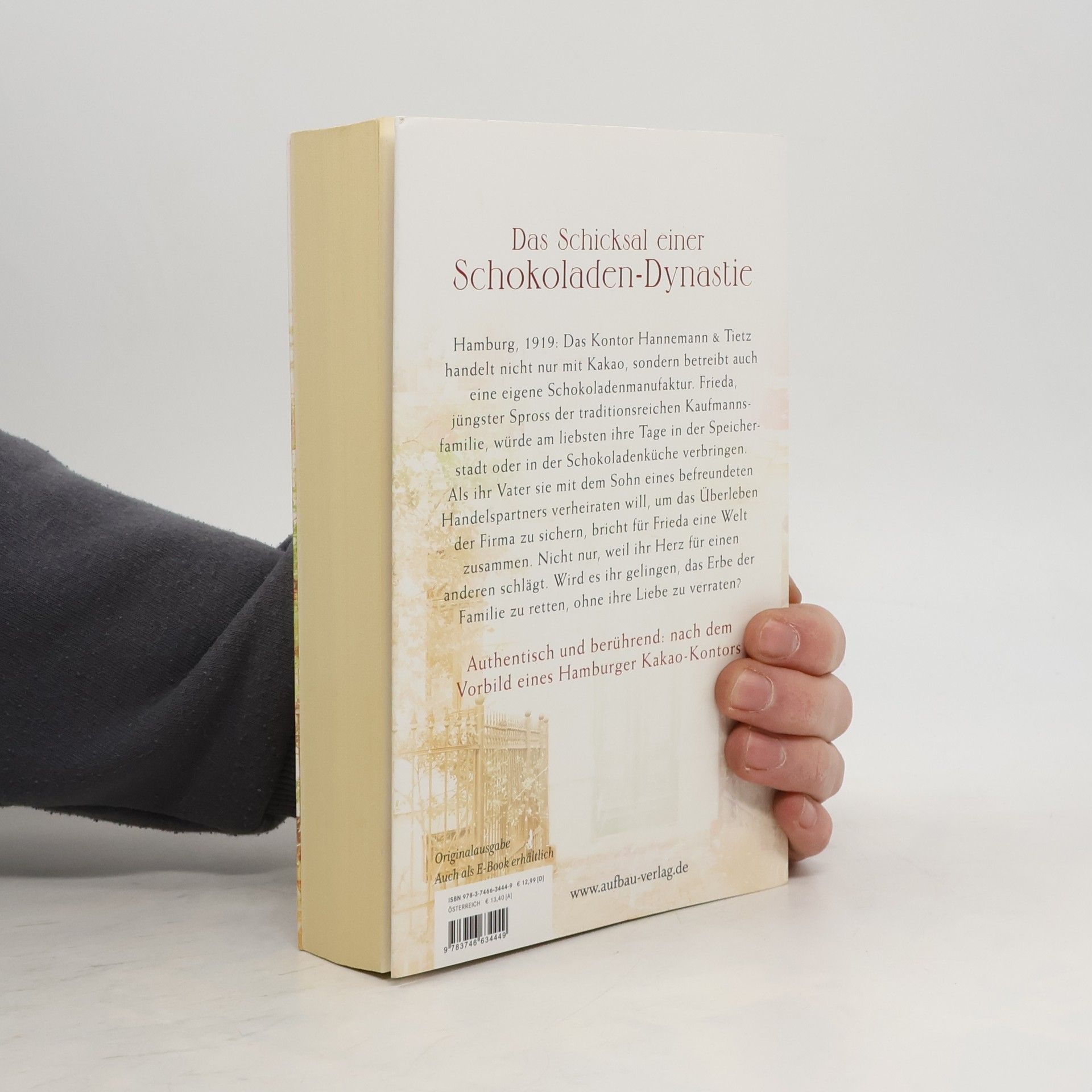 Das Schicksal einer Schokoladen-Dynastie. Hamburg, 1919: Das Kontor Hannemann & Tietz handelt nicht nur mit Kakao, sondern betreibt auch eine eigene Schokoladenmanufaktur. Frieda, jüngster Spross der traditionsreichen Kaufmannsfamilie, würde am liebsten ihre Tage in der Speicherstadt oder in der Schokoladenküche verbringen. Als ihr Vater sie mit dem Sohn eines befreundeten Handelspartners verheiraten will, um das Überleben der Firma zu sichern, bricht für Frieda eine Welt zusammen. Nicht nur, weil ihr Herz für einen anderen schlägt. Wird es ihr gelingen, das Erbe der Familie zu retten, ohne ihre Liebe zu verraten? Authentisch und berührend: Nach dem Vorbild eines Hamburger Kakao-Kontors