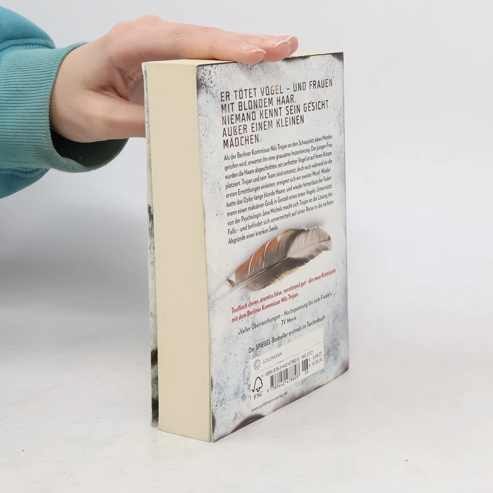 Als der Berliner Kommissar Nils Trojan an den Schauplatz eines Mordes gerufen wird, erwartet ihn eine grausame Inszenierung: Der jungen Frau wurden die Haare abgeschnitten, ein zerfetzter Vogel ist auf ihrem Körper platziert. Trojan und sein Team sind entsetzt, doch noch während sie die ersten Ermittlungen einleiten, ereignet sich ein zweiter Mord: Wieder hatte das Opfer lange blonde Haare, und wieder hinterlässt der Federmann einen makabren Gruß in Gestalt eines toten Vogels. Unterstützt von der Psychologin Jana Michels macht sich Trojan an die Lösung des Falls – und befindet sich unvermittelt auf einer Reise in die tiefsten Abgründe einer kranken Seele.