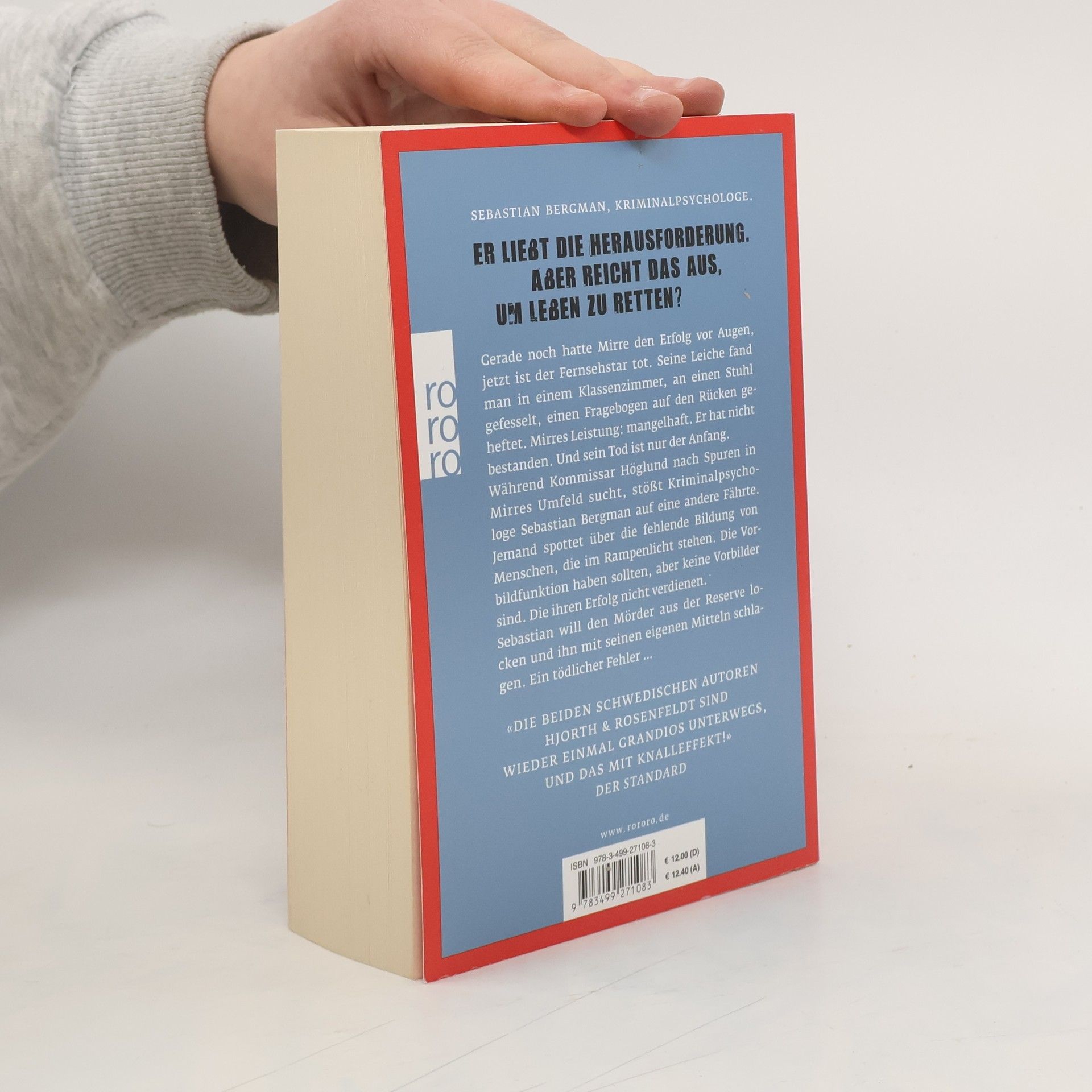 Sebastian Bergman. Kriminalpsychologe.Er ist hochintelligent. Er liebt die Herausforderung.Aber reicht das aus, um Leben zu retten?Gerade noch hatte Mirre den Erfolg vor Augen, jetzt ist der Fernsehstar tot. Hingerichtet, mit einem Bolzenschuss in den Kopf. Seine Leiche findet man in einem Klassenzimmer, an einen Stuhl gefesselt, einen Fragebogen auf den Rücken geheftet. Mirres Leistung: mangelhaft. Er hat nicht bestanden. Und sein Tod ist nur der Anfang. Während Kommissar Höglund von der Reichsmordkommission nach Spuren in Mirres Umfeld sucht, stößt Kriminalpsychologe Sebastian Bergman auf eine andere Fährte. Jemand spottet über die fehlende Bildung von Menschen, die im Rampenlicht stehen. Die Vorbildfunktion haben sollten, aber keine Vorbilder sind. Die ihren Erfolg nicht verdienen. Sebastian will den Mörder aus der Reserve locken und ihn mit seinen eigenen Mitteln schlagen. Ein tödlicher Fehler …