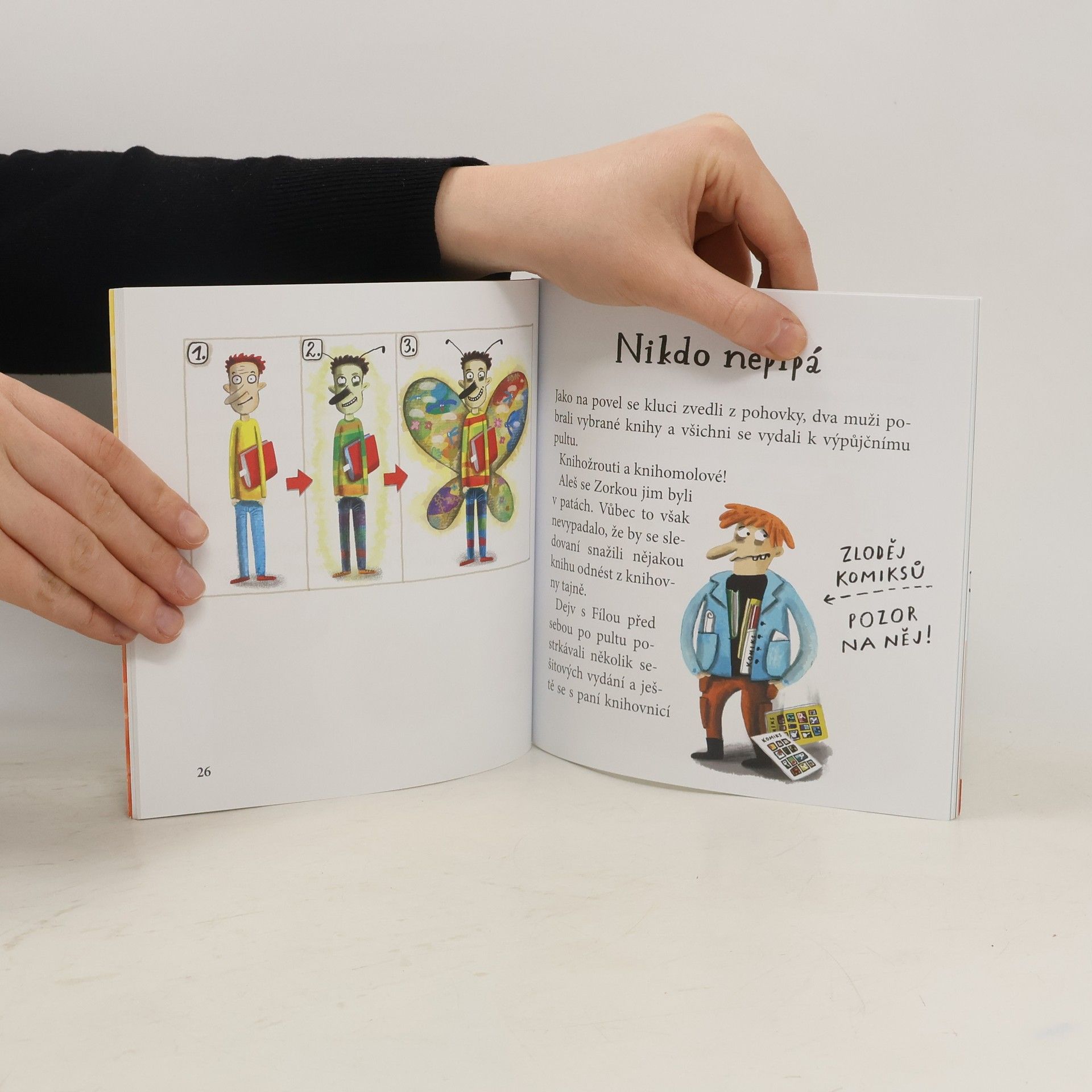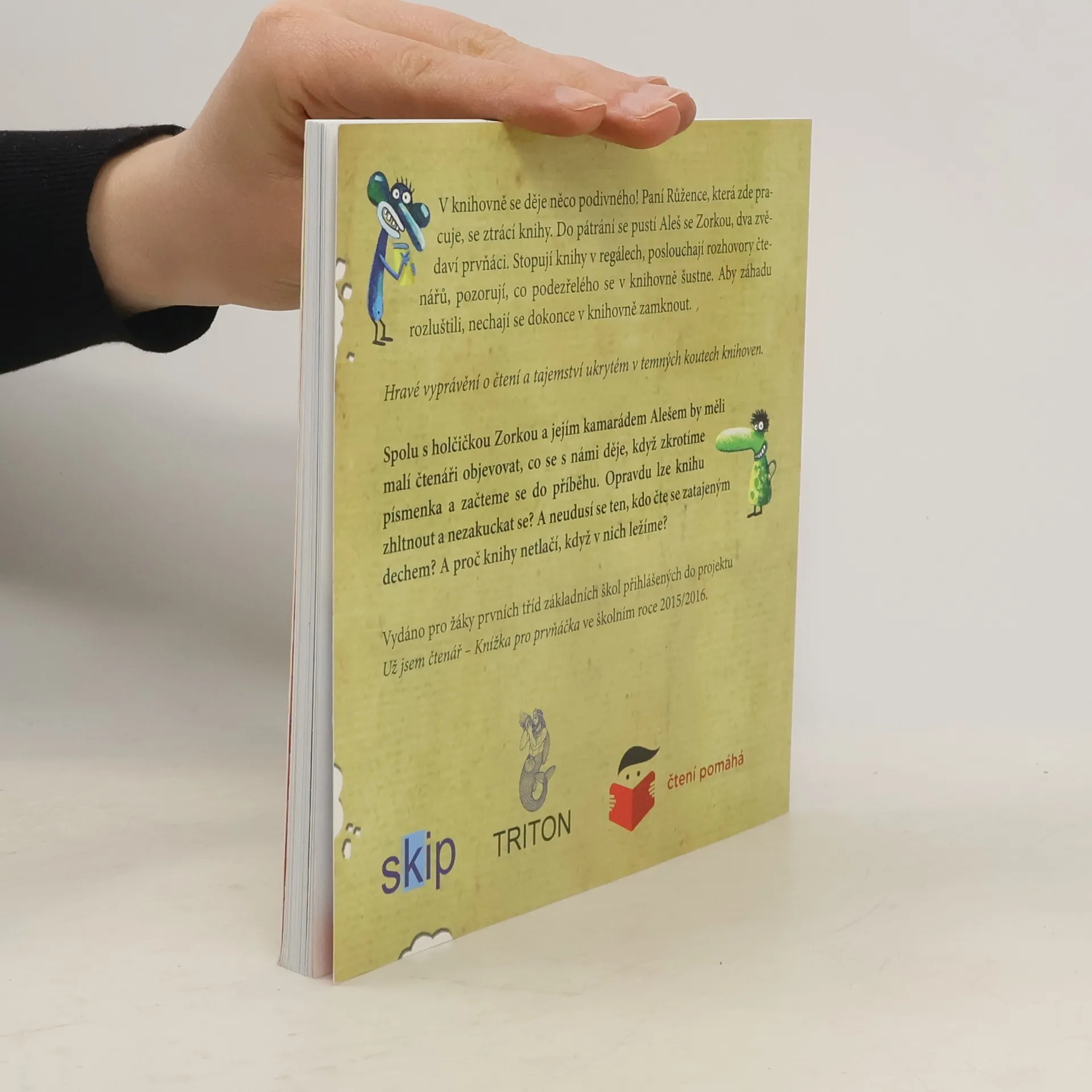 V knihovně se děje něco podivného! Paní Růžence, která zde pracuje, se ztrácí knihy. Do pátrání se pustí Aleš se Zorkou, dva zvědaví prvňáci. Stopují knihy v regálech, poslouchají rozhovory čtenářů, pozorují, co podezřelého se v knihovně šustne. Aby záhadu rozluštili, nechají se dokonce v knihovně zamknout. Hravé vyprávění o čtení a tajemství ukrytém v temných koutech knihoven. Spolu s holčičkou Zorkou a jejím kamarádem Alešem by měli malí čtenáři objevovat, co se s námi děje, když zkrotíme písmenka a začteme se do příběhu. Opravdu lze knihu zhltnout a nezakuckat se? A neudusí se ten, kdo čte se zatajeným dechem? A proč knihy netlačí, když v nich ležíme?
