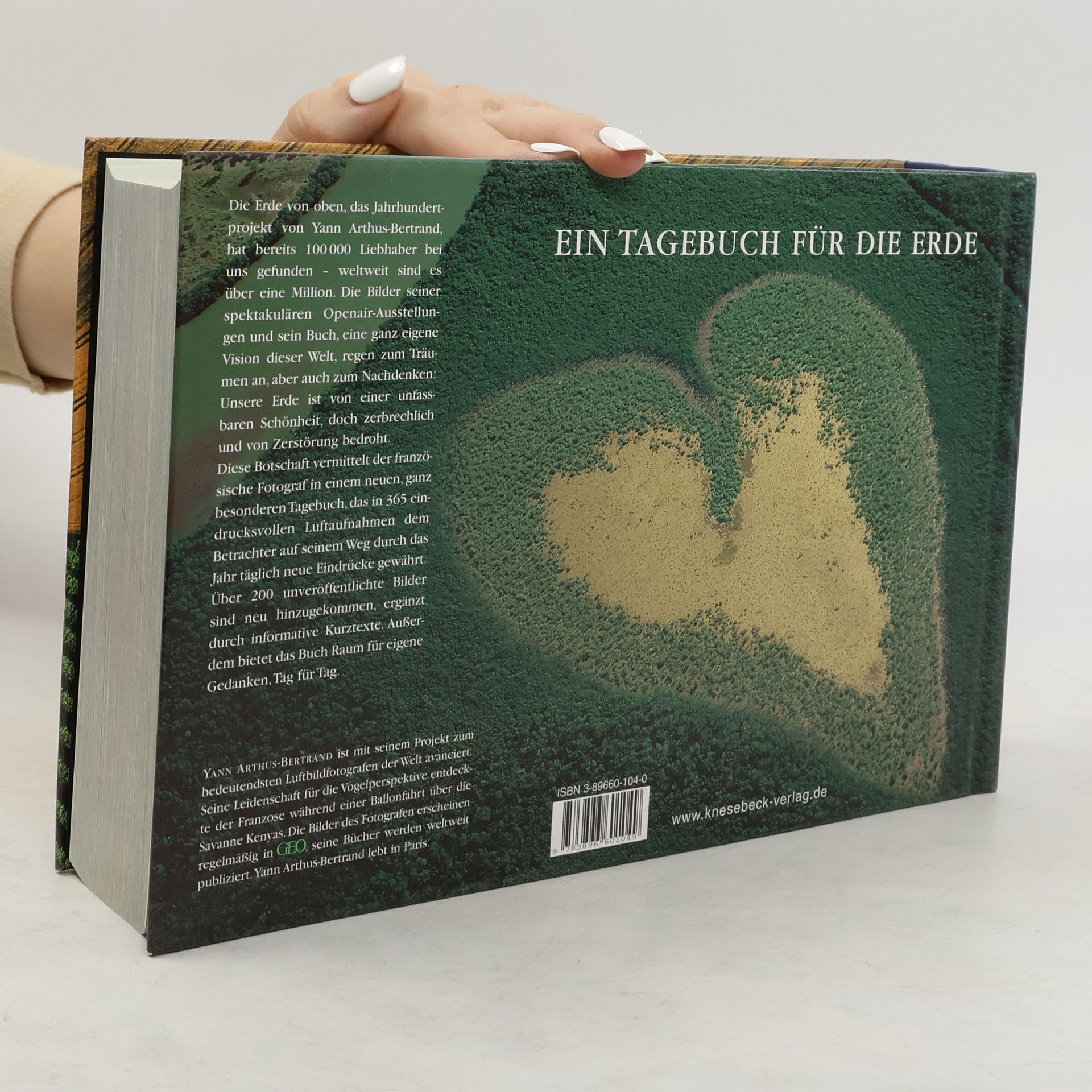 Tage, um über unsere Erde nachzudenken. Sie ist es wert, das wir jeden Tag etwas über sie hinzulernen. Der Fotograf Yann Arthus-Bertrand hat mit seinem Bildband "Die Erde von oben" Maßstäbe gesetzt. In Tausenden von Flugstunden hat er das wohl ehrgeizigste Unternehmen der Luftbildfotografie überhaupt verwirklicht: ein globales Porträt des Planeten Erde. Daran knüpft er jetzt mit einem "Tagebuch der Erde" an, für das er 365 seiner schönsten Fotografien ausgesucht hat.§Er zeigt in seinen Aufnahmen ungeahnte Muster, Farben und Strukturen, nie gesehene Formationen, die Natur- und Städtelandschaften, bunte Menschenmengen und weidende Tierherden darbieten.§Die Schönheit der Erde und die Sorge um die Umwelt: beides beschäftigt den Fotografen gleichermaßen, und er hat damit viele Menschen berührt. Zu jedem Bild gibt es einen informativen Text, der dem Leser jeden Tag einen anderen Aspekt unserer Welt nahe bringt. Ein fotografisches Fazit vom ebenso schönen wie zerbrechlichen Antlitz der Erde.