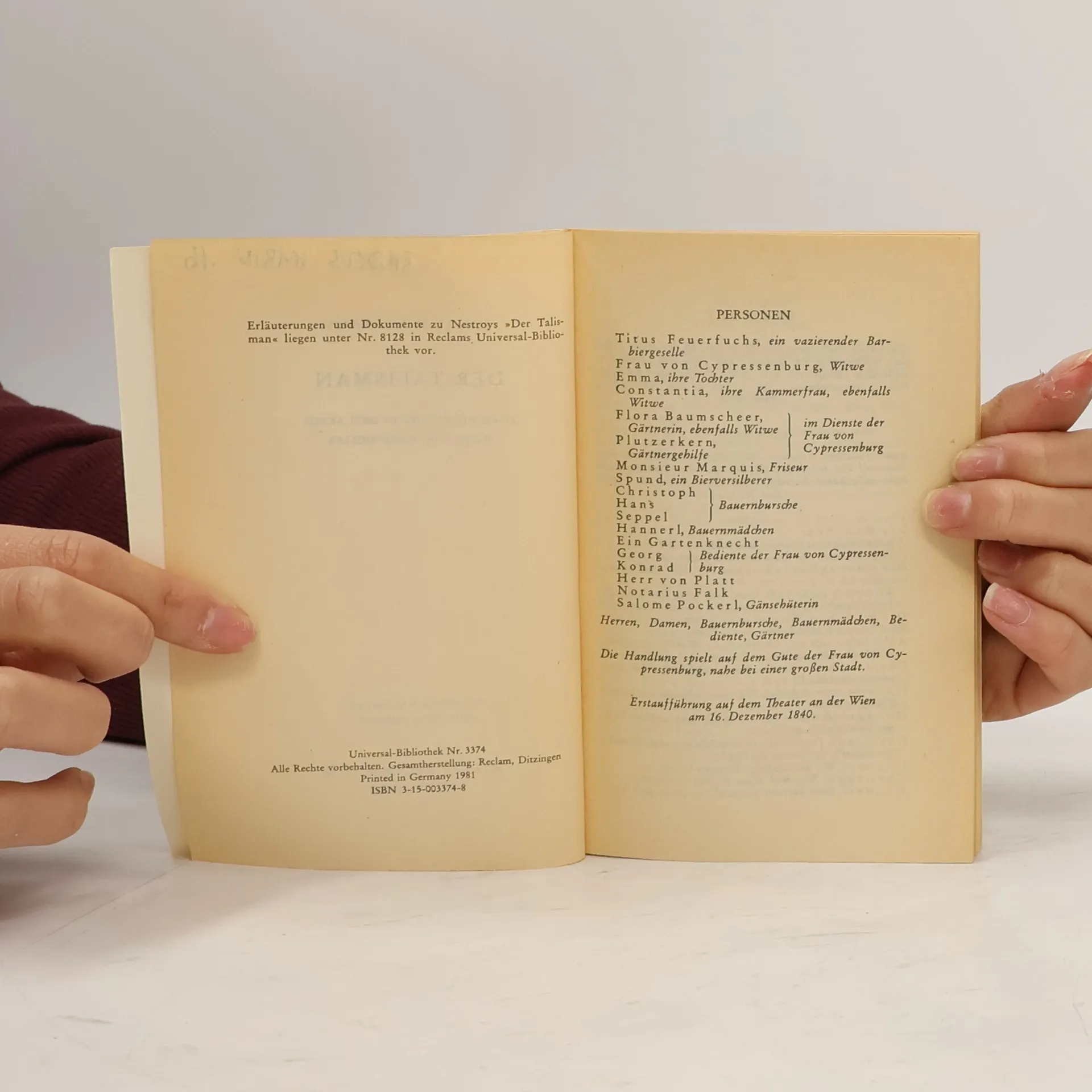 Der Talisman, Johann Nestroy