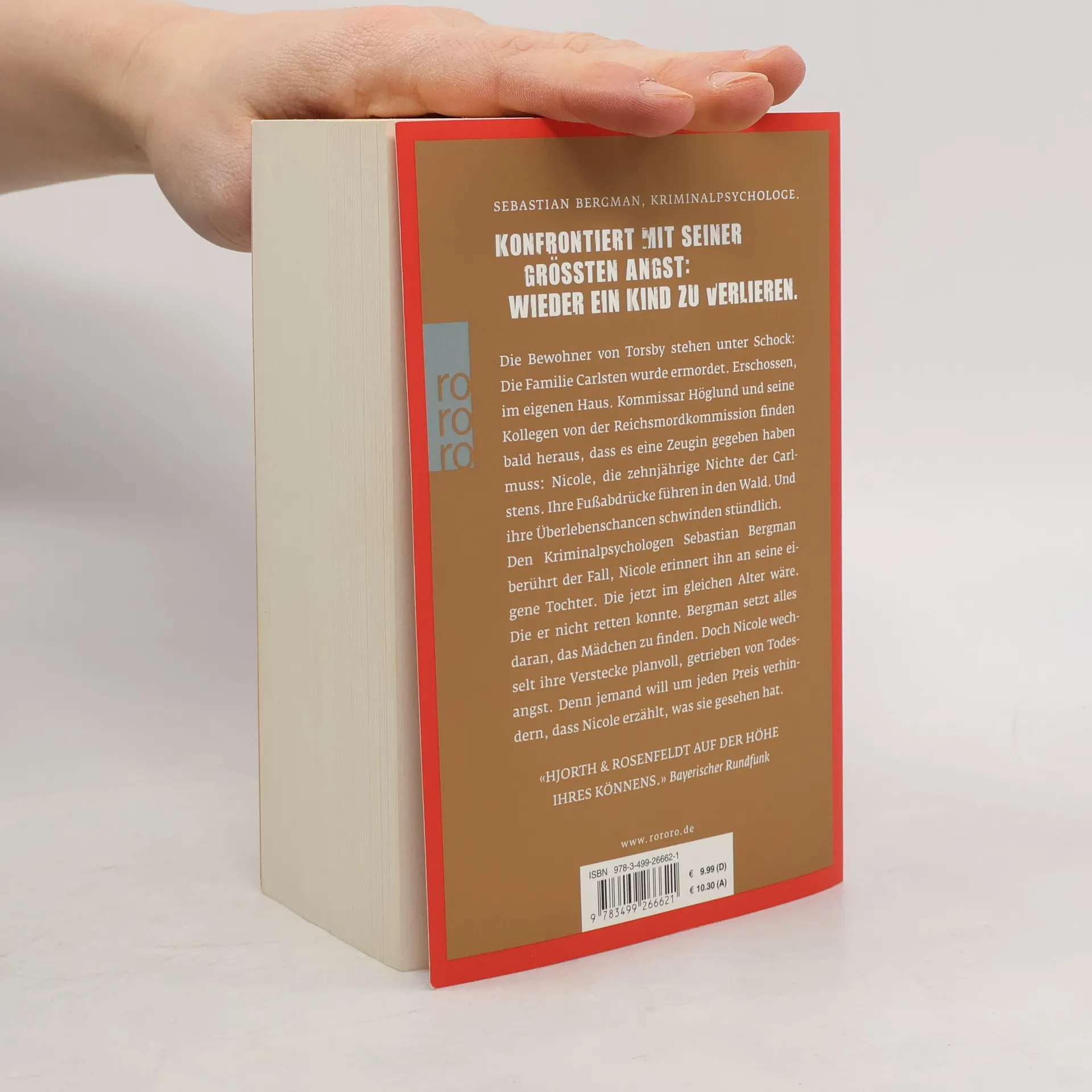 Sebastian Bergman, Kriminalpsychologe.Konfrontiert mit seiner größten Angst:Wieder ein Kind zu verlieren. Die Bewohner von Torsby stehen unter Schock: Die Familie Carlsten wurde ermordet. Erschossen, im eigenen Haus. Kommissar Höglund und seine Kollegen von der Reichsmordkommission finden bald heraus, dass es eine Zeugin gegeben haben muss: Nicole, die zehnjährige Nichte der Carlstens. Ihre Fußabdrücke führen in den Wald. Und ihre Überlebenschancen schwinden stündlich.Den Kriminalpsychologen Sebastian Bergman berührt der Fall, Nicole erinnert ihn an seine eigene Tochter. Die jetzt im gleichen Alter wäre. Die er nicht retten konnte. Bergman setzt alles daran, das Mädchen zu finden. Doch Nicole wechselt ihre Verstecke planvoll, getrieben von Todesangst. Denn jemand will um jeden Preis verhindern, dass Nicole erzählt, was sie gesehen hat.