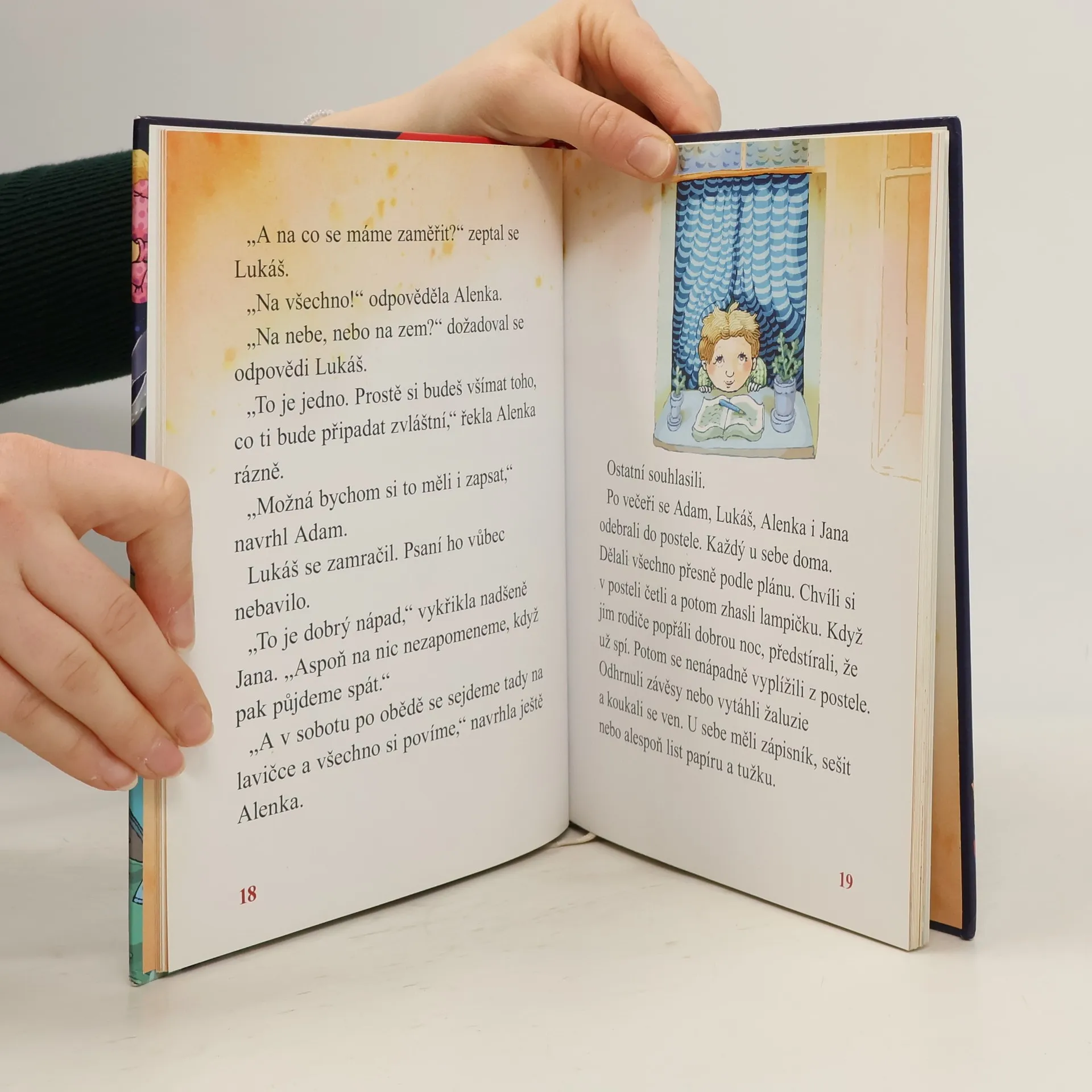 Alenka chodí do první třídy a moc touží zažít nějaké dobrodružství. Svěří se kamarádům ze třídy a nakonec vznikne pátrací parta. Ale kde vzít dobrodružství? Ve dne na nic nenarazili, a tak se rozhodli pro noční pozorování. Při něm Alenka, která bydlí naproti škole, uvidí ve školní budově rozsvícené okno. Není to okno v žádné třídě, ale na půdě. Děti se rozhodnou ho prozkoumat a po vyučování se tajně vypraví do půdních prostor. V zaprášené místnosti, ve které se v noci svítilo, neobjeví na první pohled nic neobvyklého. Jsou tam jen vycpaná zvířata. Ale jak to, že na stole není žádný prach? To je rozhodně potřeba důkladně prozkoumat. Alenka, Jana, Adam a Lukáš přemýšlejí, jak to udělat, aby se do školy mohli dostat v noci. Pomůže jim náhoda. Paní učitelka pro děti místo zrušeného školního výletu připraví spaní ve škole se spoustou her a zajímavých soutěží. Při té příležitosti se dětem podaří podívat se na půdu i v noci. To, co uvidí, je rozhodně překvapí.