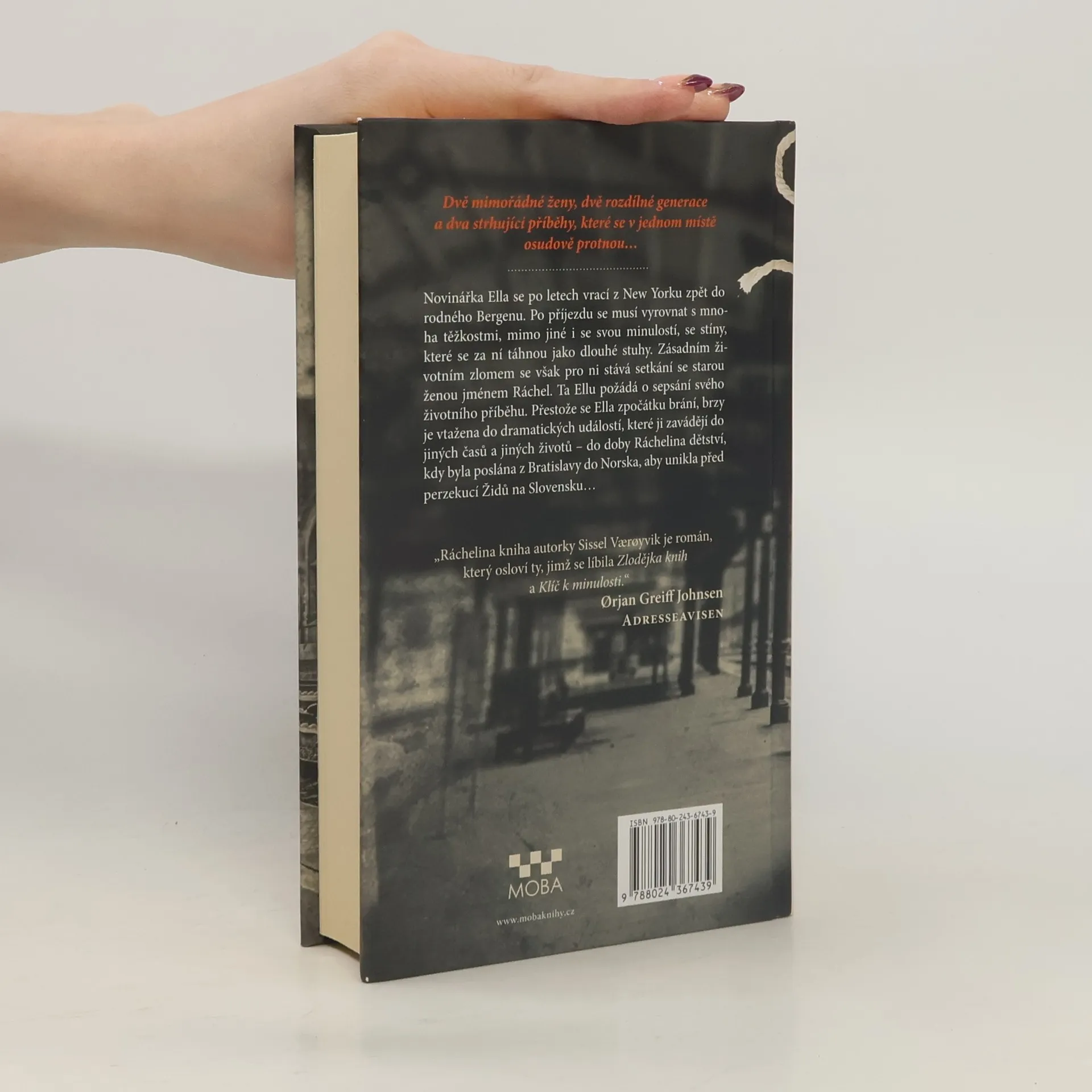 Dramatická smrt rodičů přivede Ellu z New Yorku zpět do rodného Bergenu, aby tam vyřešila majetkové záležitosti. Na místě však zjistí, že jejich rodinnou vilu obývá již několik měsíců stará paní jménem Ráchel. Ella chce dům po smrti rodičů prodat a hodlá Ráchel vypovědět nájemní smlouvu. Při jednom setkání však Ráchel Ellu, která pracuje jako novinářka, požádá o sepsání svého životního příběhu. Ella se rozhodne spíše ze slušnosti vyslechnout její vyprávění, avšak zakrátko je vtažena do pozoruhodného životního příběhu, který se odehrává v několika zemích, od Ráchelina dětství, kdy byla jako uprchlík poslána z Bratislavy do Norska...