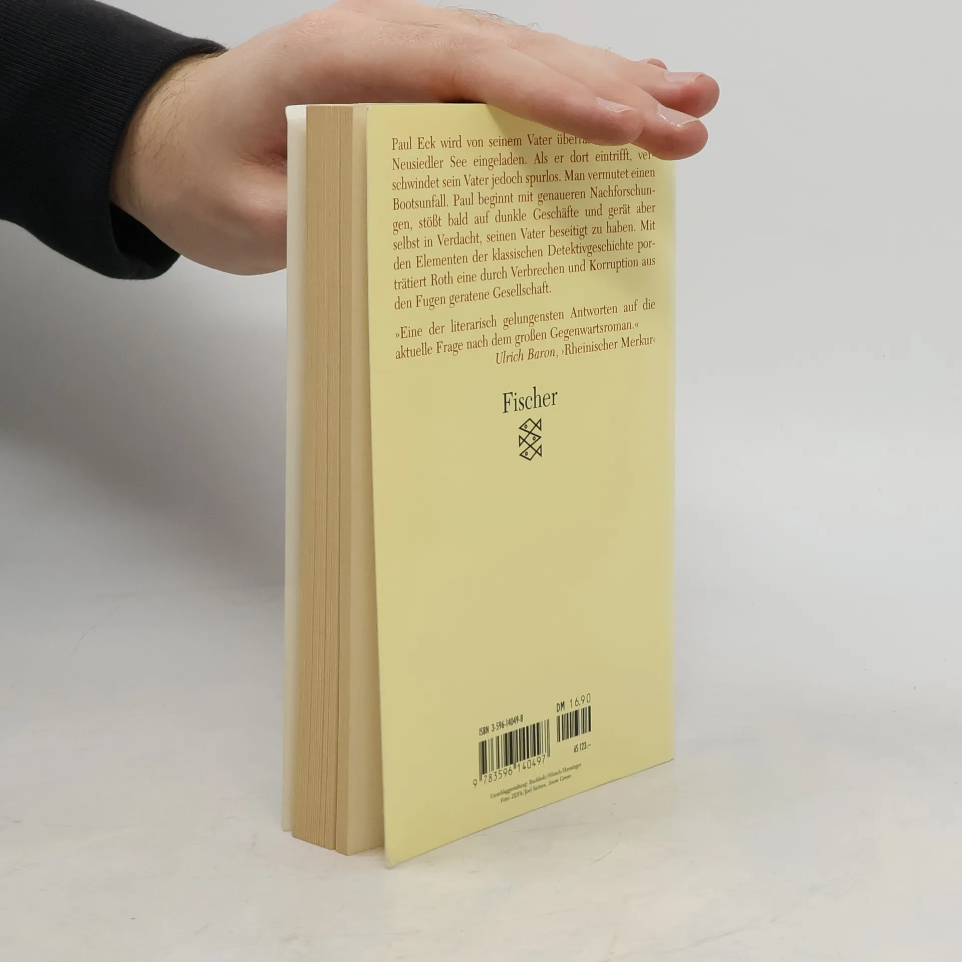 Paul Eck wird von seinem Vater überraschend an den Neusiedler See eingeladen. Als er dort eintrifft, verschwindet sein Vater jedoch spurlos. Man vermutet einen Bootsunfall. Paul beginnt mit genaueren Nachforschungen, stößt bald auf dunkle Geschäfte und gerät aber selbst in Verdacht, seinen Vater beseitigt zu haben. Mit den Elementen der klassischen Detektivgeschichte porträtiert Roth eine durch Verbrechen und Korruption aus den Fugen geratene Gesellschaft.