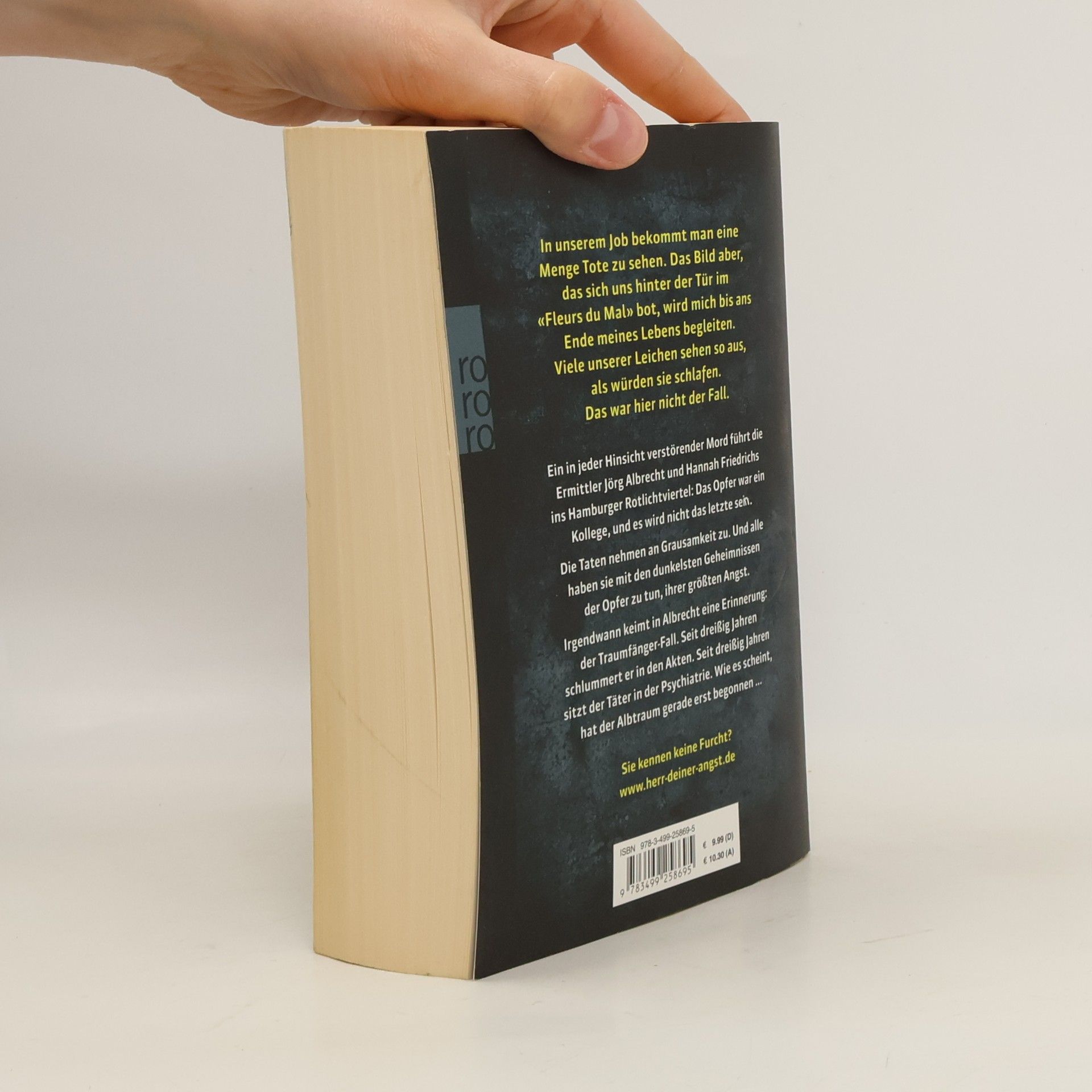 In unserem Job bekommt man eine Menge Tote zu sehen. Das Bild aber, das sich uns hinter der Tür im «Fleurs du Mal» bot, wird mich bis ans Ende meines Lebens begleiten. Viele unserer Leichen sehen so aus, als würden sie schlafen. Das war hier nicht der Fall. Ein in jeder Hinsicht verstörender Mord führt die Ermittler Jörg Albrecht und Hannah Friedrichs ins Hamburger Rotlichtviertel: Das Opfer war ein Kollege, und es wird nicht das letzte sein. Die Taten nehmen an Grausamkeit zu. Und alle haben sie mit den dunkelsten Geheimnissen der Opfer zu tun, ihrer größten Angst. Irgendwann keimt in Albrecht eine Erinnerung: der Traumfänger-Fall. Seit dreißig Jahren schlummert er in den Akten. Seit dreißig Jahren sitzt der Täter in der Psychiatrie. Wie es scheint, hat der Albtraum gerade erst begonnen ... Sie kennen keine Furcht? www. herr-deiner-angst. de