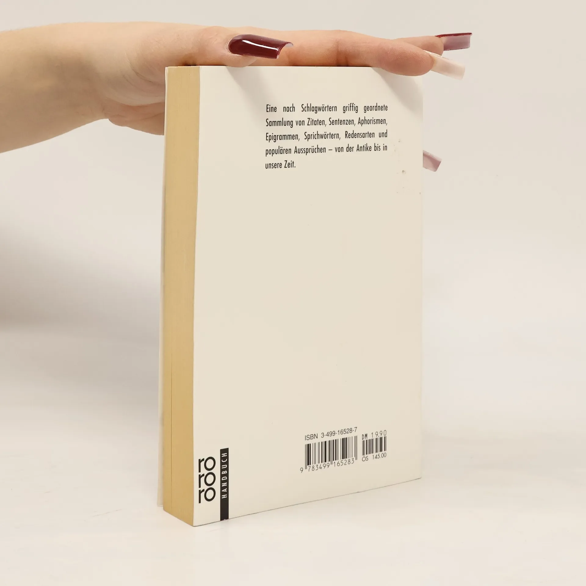 Ein umfassendes Zitatenlexikon mit über 13.000 Sprichwörtern, Redensarten, Aphorismen und mehr, alphabetisch nach Schlagworten geordnet. Es bietet eine reiche Sammlung alter und neuer Weisheiten, Sinnsprüche und Regeln.