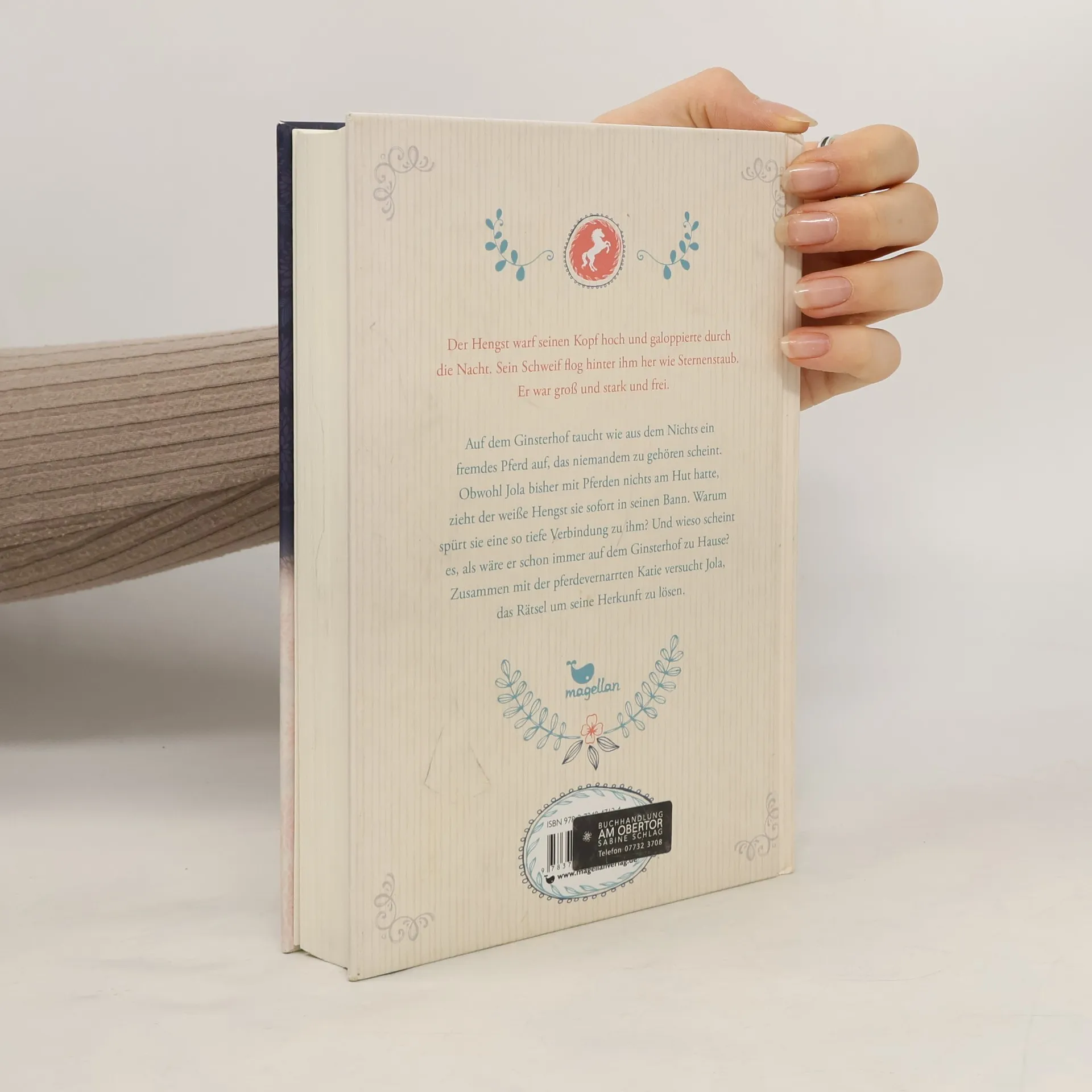 Bayern statt Neuseeland, Schule statt Fernunterricht, Ginsterhof statt Abenteuer: Das ist Jolas neues Leben. Doch schnell merkt sie, dass es ihr auch auf dem idyllischen Reiterhof nicht langweilig werden wird. Denn schon in ihrer ersten Nacht im neuen Zuhause taucht ein geheimnisvolles Pferd auf. Obwohl Jola bisher mit Pferden nichts am Hut hatte, zieht der weiße Hengst sie sofort in seinen Bann. Warum spürt sie eine so tiefe Verbindung zu ihm? Und wieso scheint es, als wäre er schon immer auf dem Ginsterhof zu Hause? Gemeinsam mit der pferdevernarrten Katie versucht Jola, das Rätsel um seine Herkunft zu lösen. Denn die beiden Mädchen sind sich sicher: Es gibt einen Grund, warum der weiße Hengst auf dem Ginsterhof aufgetaucht ist. Und den wollen sie unbedingt herausfinden.