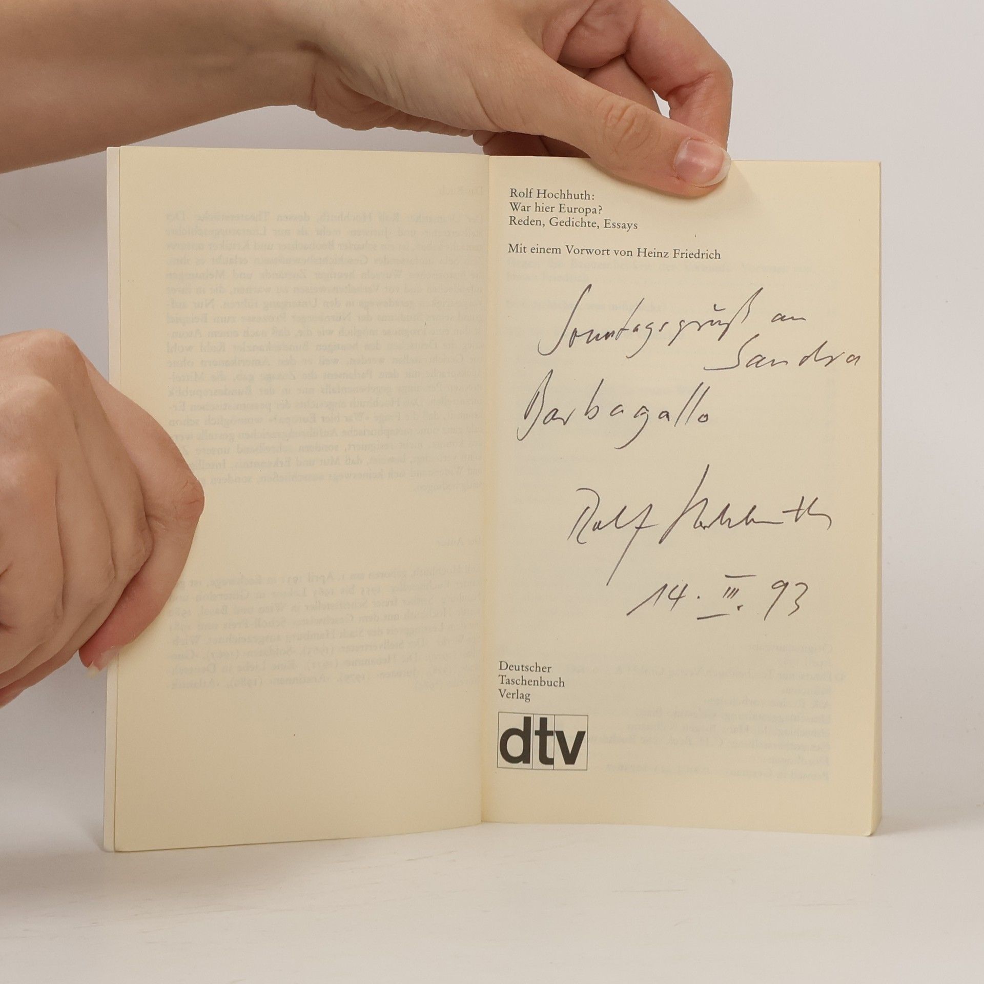 War hier Europa?, Rolf Hochhuth
