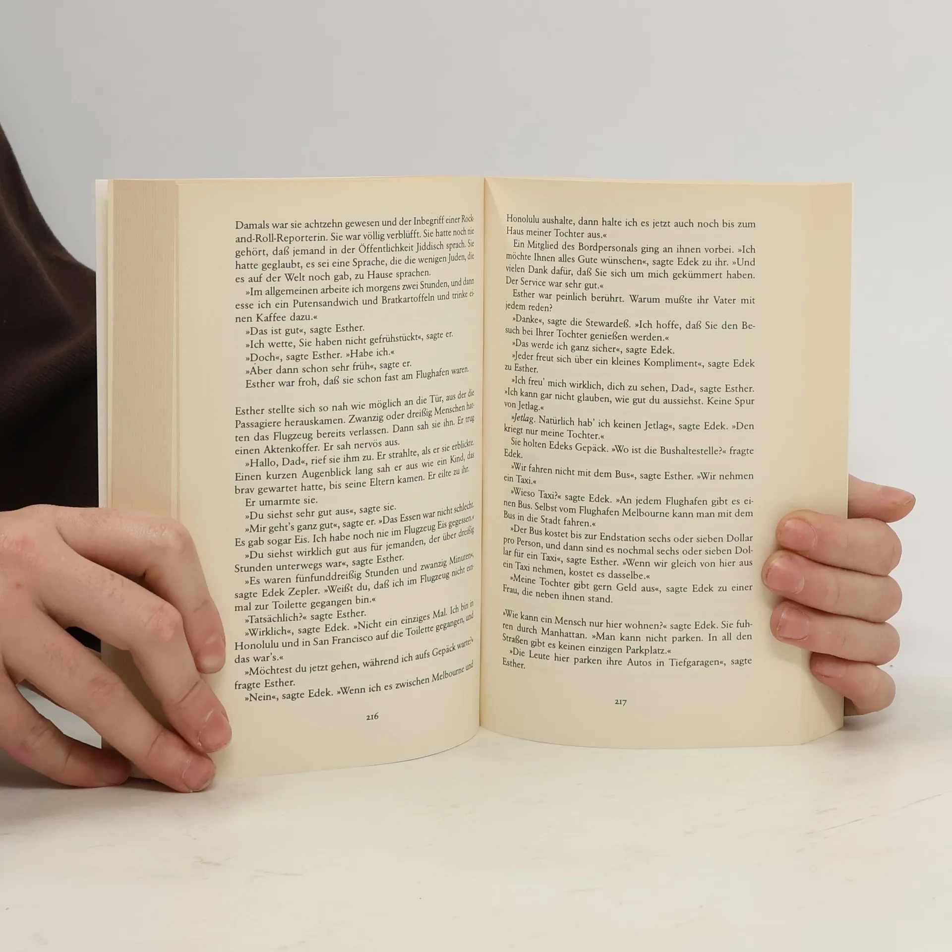 Einfach so erzählt die Geschichte einer Frau, die in New York zu Hause ist. Sie schreibt Nachrufe für eine Zeitung, lebt mit ihrem Ehemann, einem Künstler, in einem weitläufigen Loft, hat drei aufmüpfige, aber wohlgeratene Kinder, und wenig Außergewöhnliches, nichts Dramatisches drängt sich in den Ablauf ihrer Tage. Das Außergewöhnliche liegt in ihr selbst, in ihrer Art, die Umwelt wahrzunehmen: Soll sie ein koscheres Huhn kaufen, oder darf sie auf die Instanthühnerbrühe zurückgreifen? Kann sie sich von den reichen Gastgebern mit deren Mercedes zur Dinnerparty kutschieren lassen? Ihre Lebensgeschichte – sie ist die Tochter jüdischer Eltern, die den Holocaust überlebt haben – ist immer präsent, und ihr Beruf – durch den sie häufig Begräbnisse zumeist völlig fremder Menschen besuchen muß – verstärkt das Gefühl für die Zerbrechlichkeit des Glücks.