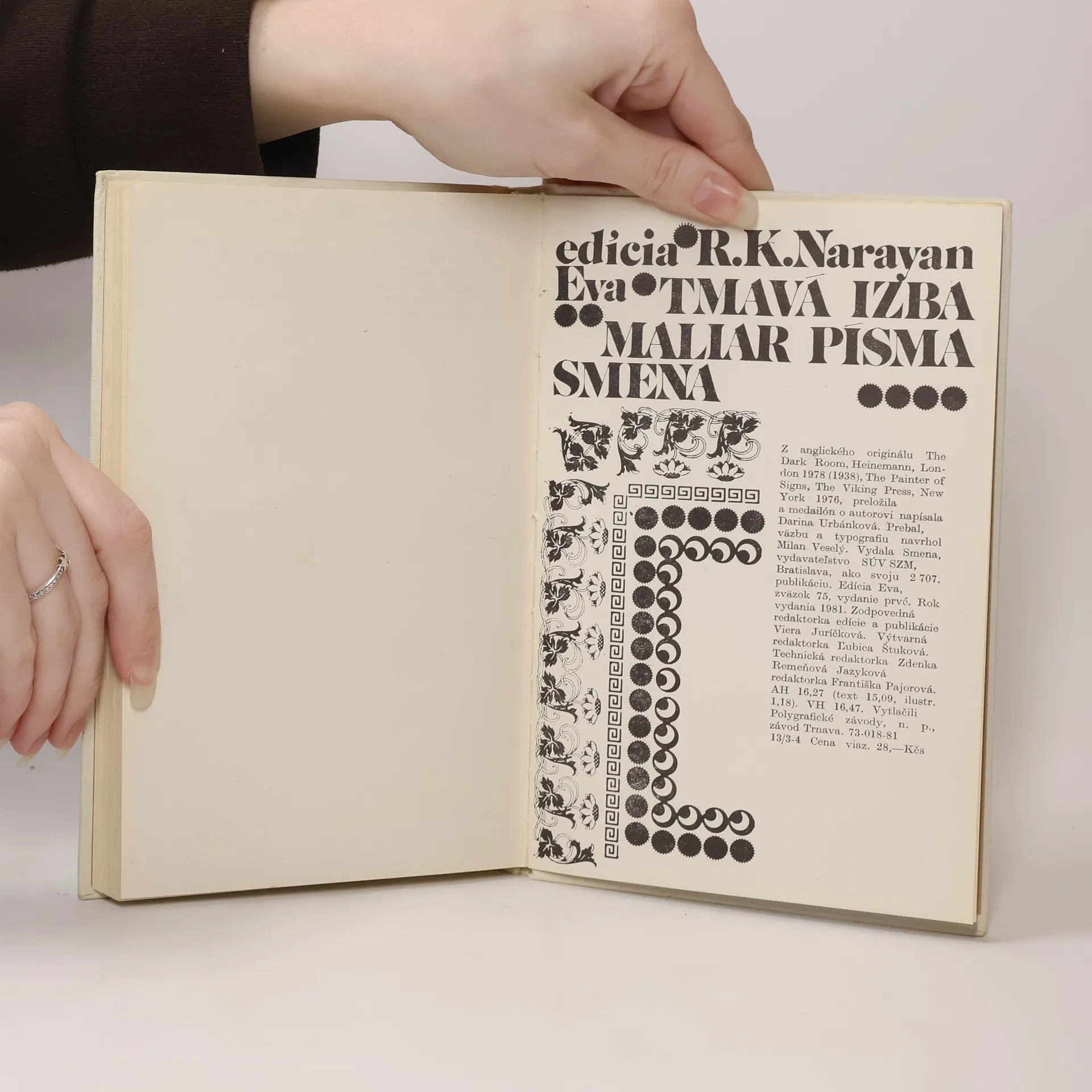 Tmavá izba. Maliar písma, R. K. Narayan