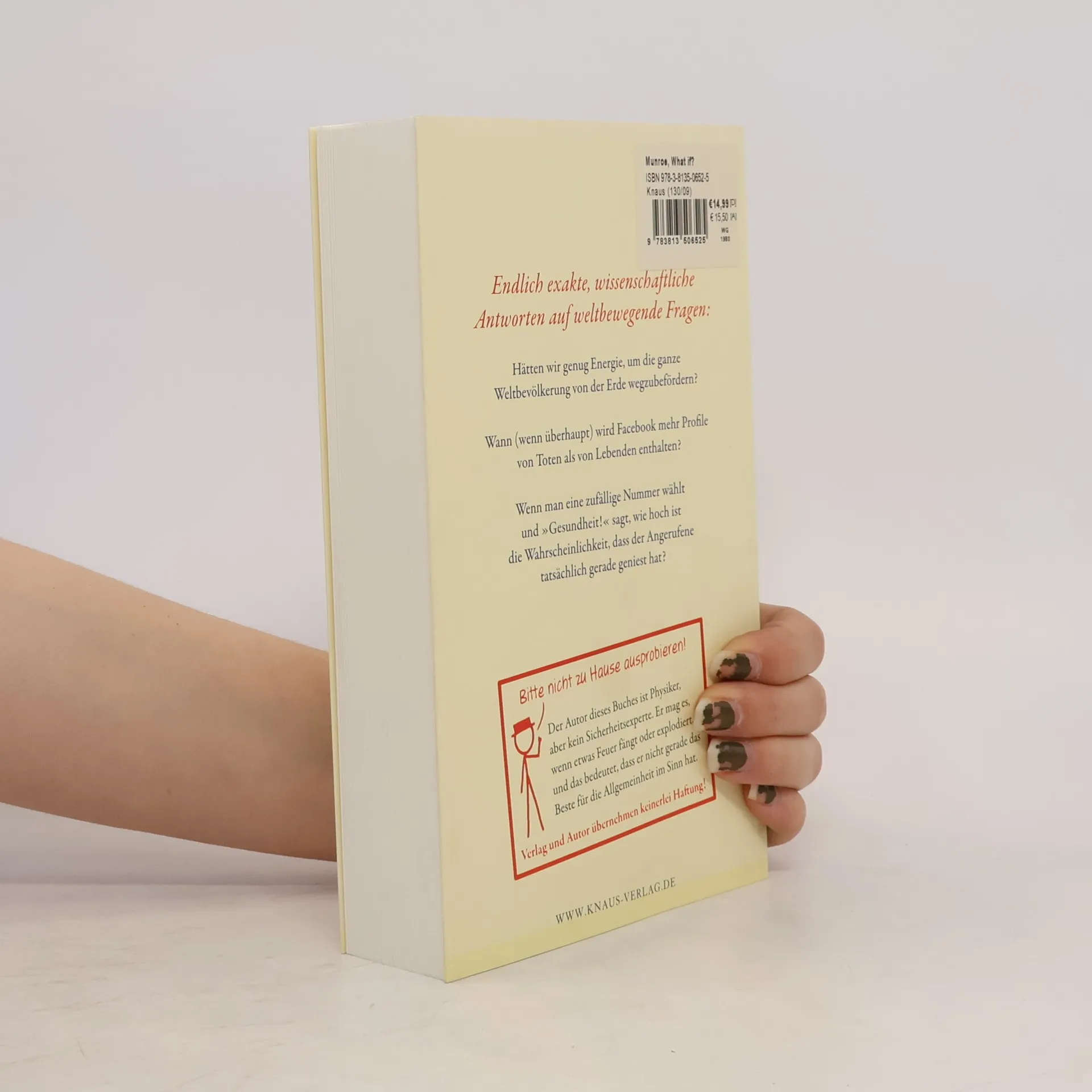 Endlich erfindet wieder jemand das Pop-Science-Erklärbuch neu! Wenn xkcd.com einen neuen Science Cartoon postet, vibriert das Internet. Sein Blog What if, auf dem der Physiker Randall Munroe jede Woche scheinbar unsinnige Fragen mit exakter Wissenschaft und genialen Strichmännchen beantwortet, ist Kult. Wie lange würde es dauern, bis wir merken würden, dass sich der Erdumfang verändert? Was wäre, wenn der gesamte Niederschlag in einem – quasi omnidirektionalen - Überschall-Regentropfen fiele? Endlich auch als Buch und endlich auf Deutsch!