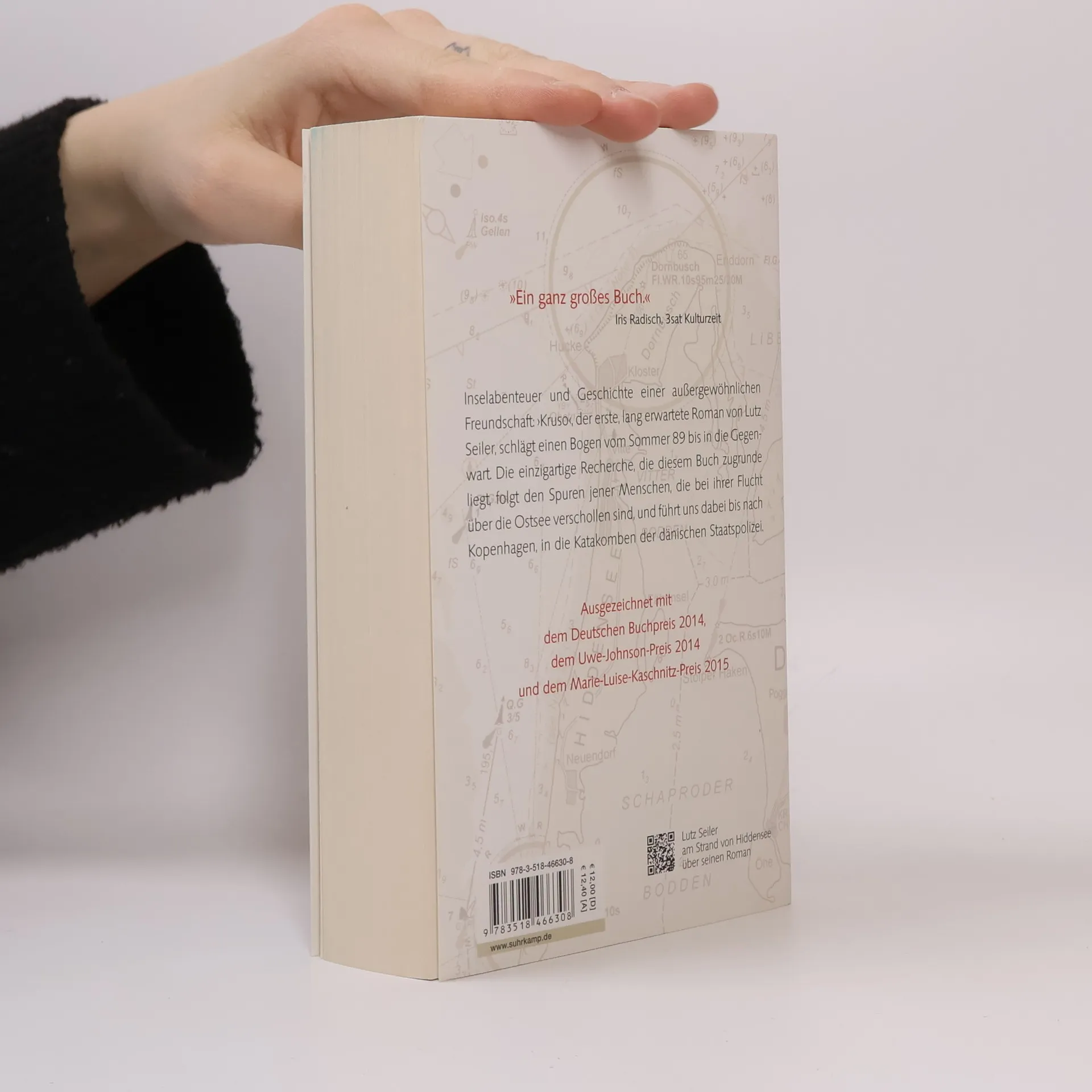 Als seine Freundin verunglückt und er in ein tiefes Loch zu stürzen droht, beschließt Edgar Bendler, nach Hiddensee zu fliehen – auf jene legendenumwobene Insel, die schon vielen Gestrandeten als Zuflucht diente. Er wird Abwäscher im Klausner, einer Kneipe hoch über dem Meer, und lernt Alexander Krusowitsch kennen – Kruso. Eine schwierige, zärtliche Freundschaft beginnt. Von Kruso, dem Meister und Inselpaten, wird Ed eingeweiht in die Rituale der Saisonarbeiter und die Gesetze ihrer Nächte. Nach und nach erschließen sich ihm die Geheimnisse der Insel und des Klausners. Als Ed schon glaubt, wieder einen Platz im Leben gefunden zu haben, erschüttert der Herbst 89 das fragile Gefüge der Inselbewohner. Am Ende steht ein Kampf auf Leben und Tod – und ein Versprechen. Inselabenteuer und Geschichte einer außergewöhnlichen Freundschaft – Lutz Seilers preisgekrönter Roman schlägt einen Bogen vom Sommer 89 bis in die Gegenwart. Die einzigartige Recherche, die diesem Buch zugrunde liegt, folgt den Spuren jener Menschen, die bei ihrer Flucht über die Ostsee verschollen sind, und führt uns dabei bis nach Kopenhagen, in die Katakomben der dänischen Staatspolizei.