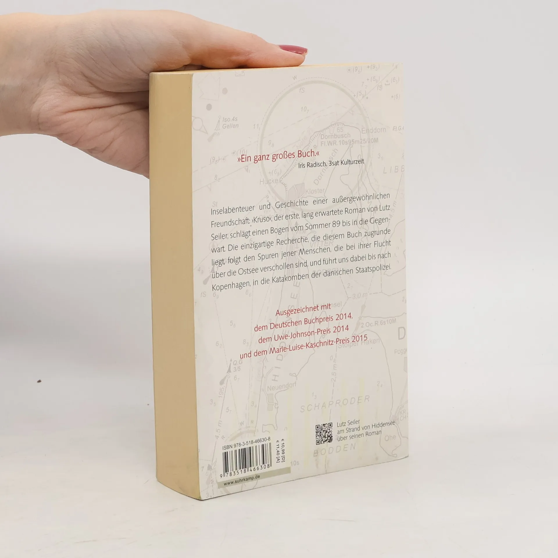 Als seine Freundin verunglückt und er in ein tiefes Loch zu stürzen droht, beschließt Edgar Bendler, nach Hiddensee zu fliehen – auf jene legendenumwobene Insel, die schon vielen Gestrandeten als Zuflucht diente. Er wird Abwäscher im Klausner, einer Kneipe hoch über dem Meer, und lernt Alexander Krusowitsch kennen – Kruso. Eine schwierige, zärtliche Freundschaft beginnt. Von Kruso, dem Meister und Inselpaten, wird Ed eingeweiht in die Rituale der Saisonarbeiter und die Gesetze ihrer Nächte. Nach und nach erschließen sich ihm die Geheimnisse der Insel und des Klausners. Als Ed schon glaubt, wieder einen Platz im Leben gefunden zu haben, erschüttert der Herbst 89 das fragile Gefüge der Inselbewohner. Am Ende steht ein Kampf auf Leben und Tod – und ein Versprechen. Inselabenteuer und Geschichte einer außergewöhnlichen Freundschaft – Lutz Seilers preisgekrönter Roman schlägt einen Bogen vom Sommer 89 bis in die Gegenwart. Die einzigartige Recherche, die diesem Buch zugrunde liegt, folgt den Spuren jener Menschen, die bei ihrer Flucht über die Ostsee verschollen sind, und führt uns dabei bis nach Kopenhagen, in die Katakomben der dänischen Staatspolizei.