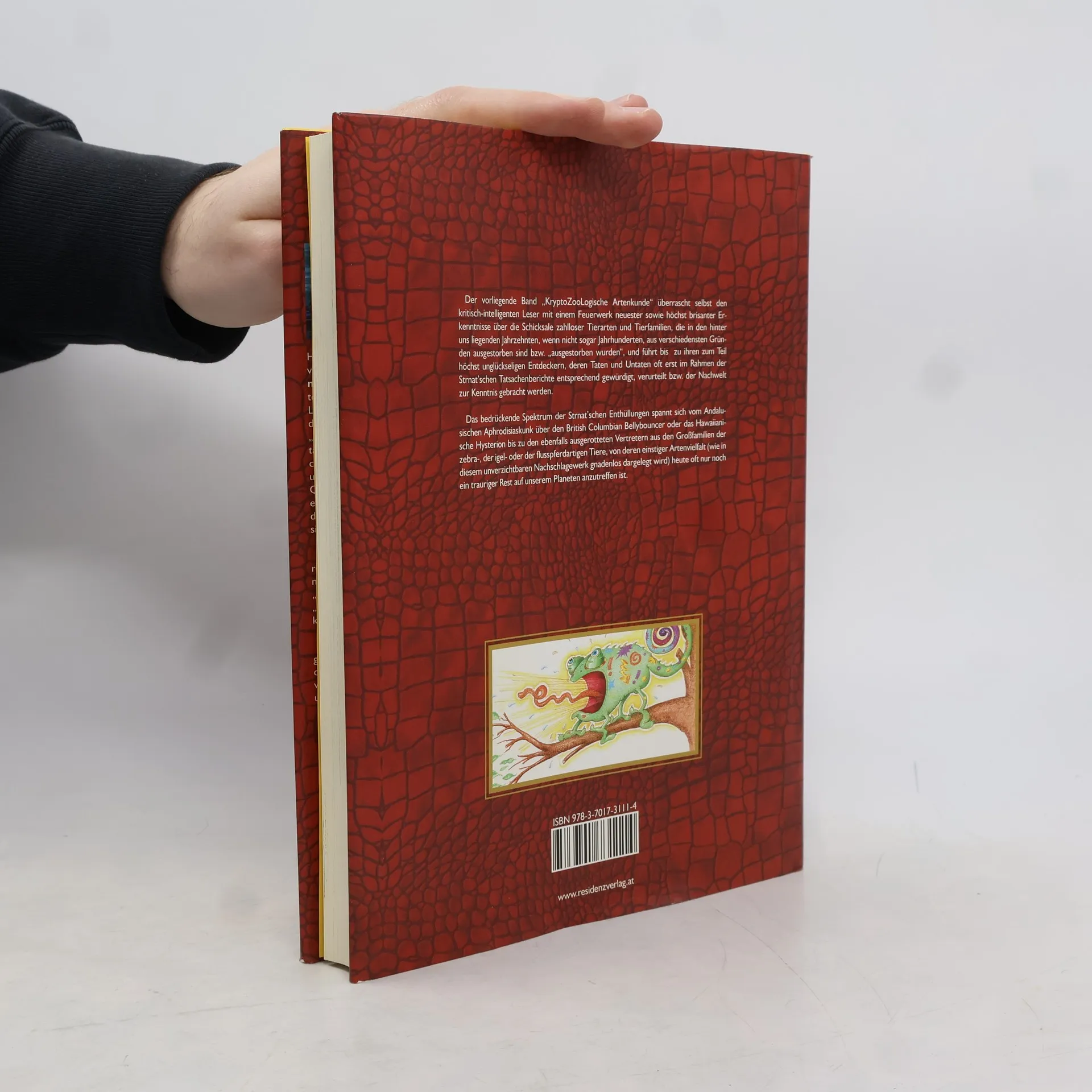 DAS VORLIEGENDE OPUS 1 der „KryptoZooLogischen Artenkunde“ überrascht selbst den kritisch-intelligenten Leser mit einem Feuerwerk neuester sowie höchst brisanter Erkenntnisse über die Schicksale zahlloser Tierarten und Tierfamilien, die in den hinter uns liegenden Jahrzehnten, wenn nicht sogar Jahrhunderten, aus verschiedensten Gründen ausgestorben sind bzw. „ausgestorben wurden“ – bis zu ihren zum Teil höchst unglückseligen Ent - deckern, deren Taten und Untaten oft erst im Rahmen der Strnat’schen Tatsachenberichte entsprechend gewürdigt und der Nachwelt zur Kenntnis gebracht werden. Das bedrückende Spektrum der Strnat’schen Enthüllungen spannt sich vom „Lesothischen Laberaffen“ über den „British Columbia Bellybouncer“ und den „Andalusischen Aphrodisiaskunk“ bis zu den Vertretern aus den Großfamilien der Zebra-, der Igel- oder der Flusspferdartigen Tiere, von deren einstiger Artenvielfalt (wie in diesem unverzichtbaren Nachschlagewerk gnadenlos dargelegt wird) heute oft nur noch ein trauriger Rest auf unserem Planeten anzutreffen ist.