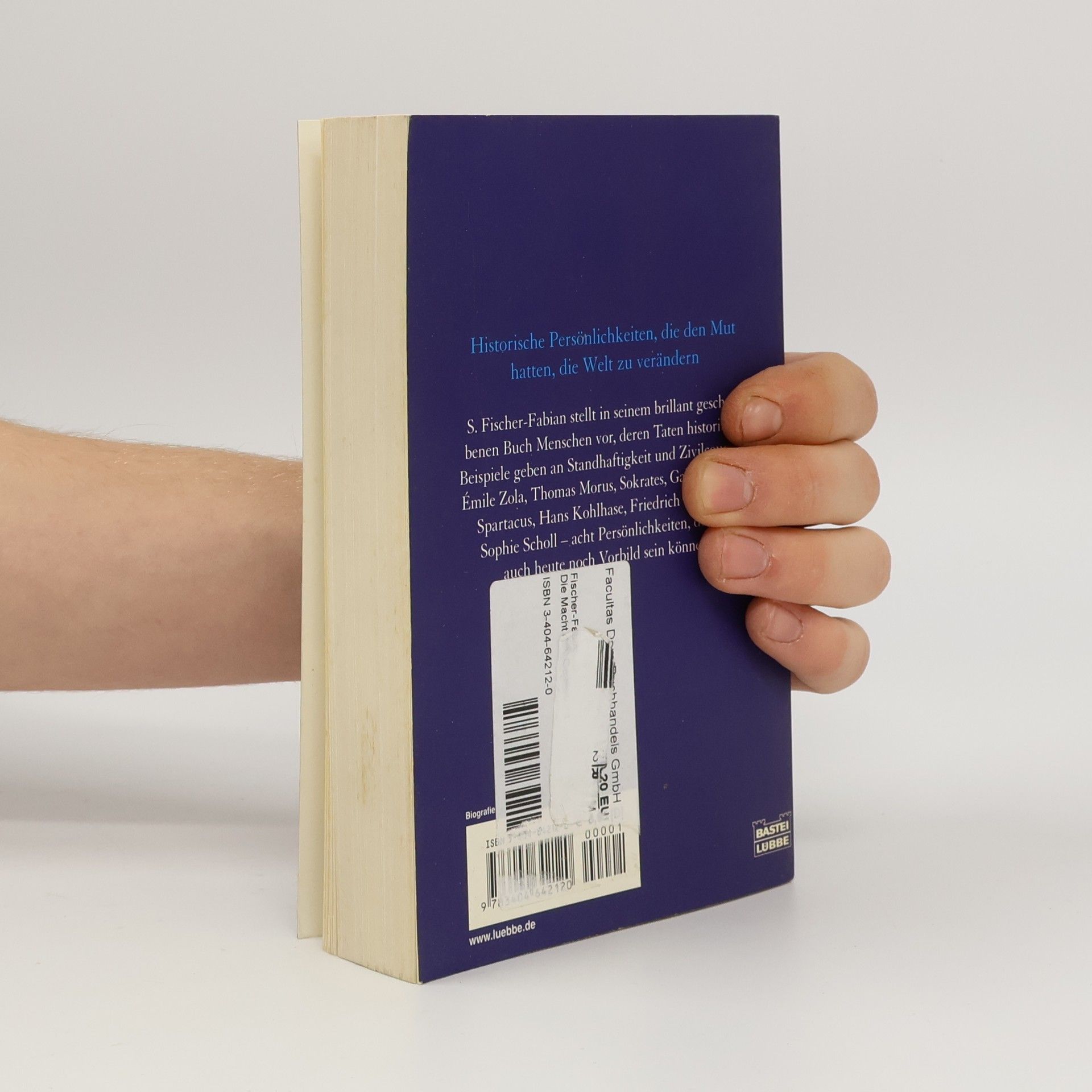 S. Fischer-Fabian stellt in seinem brillant geschriebenen Buch Menschen vor, deren Taten historische Beispiele geben an Standhaftigkeit und Zivilcourage. Emile Zola, Thomas Morus, Sokrates, Galileo Galilei, Spartacus, Hans Kohlhase, Friedrich von Spee, Sophie Scholl - acht Persönlichkeiten, die uns auch heute noch Vorbild sein können.