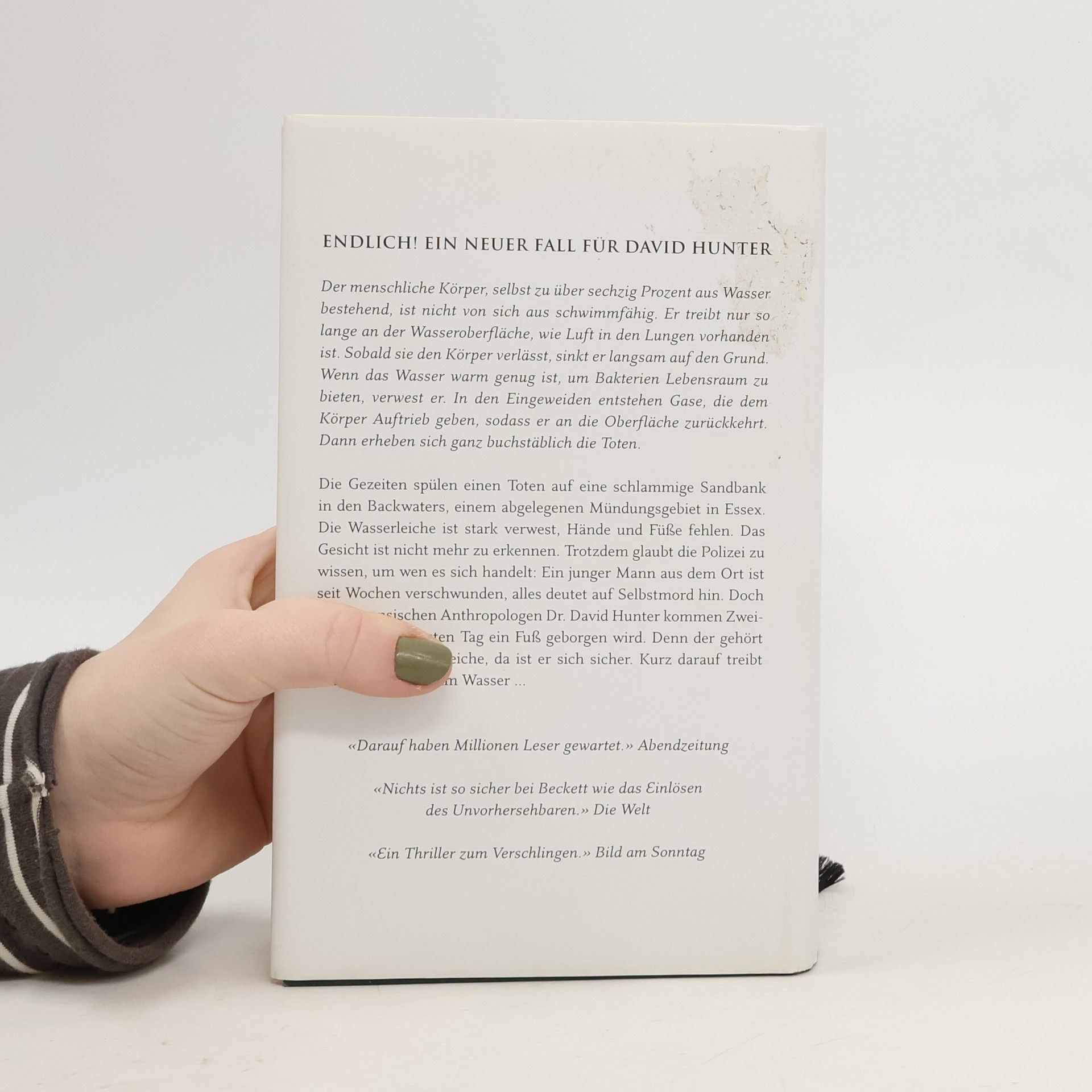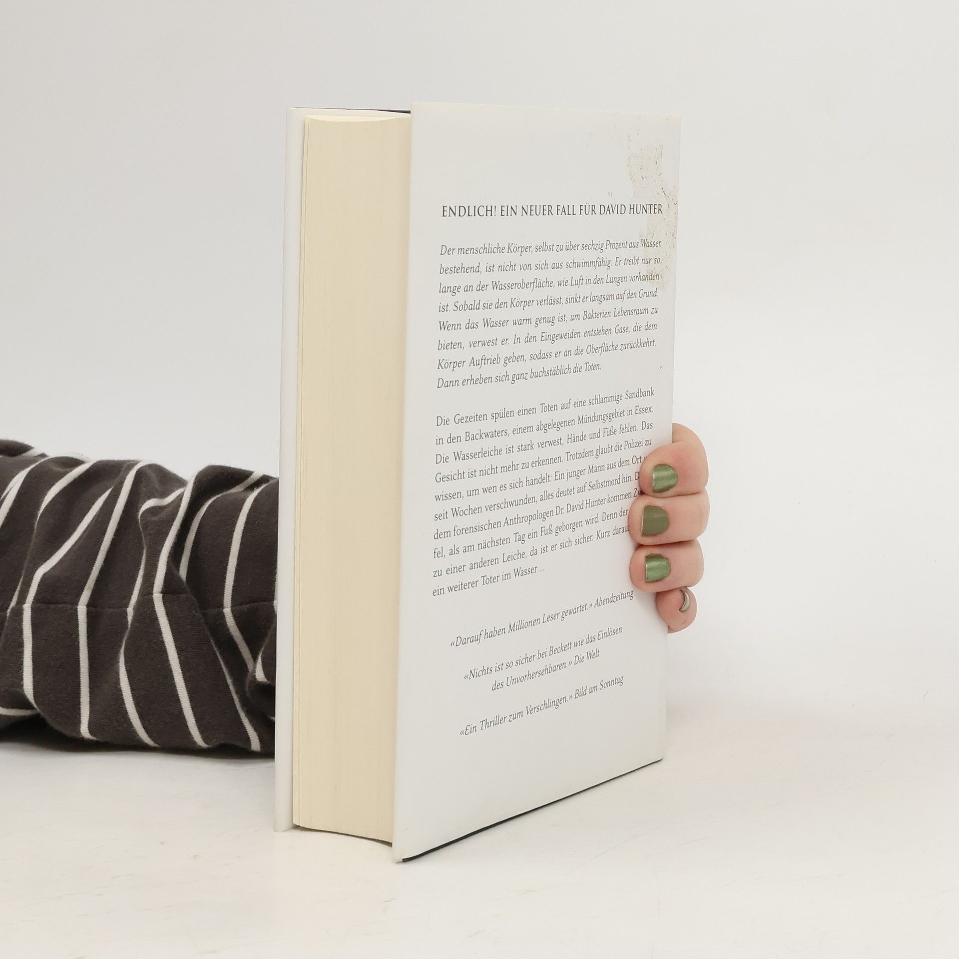 Sein fünfter Fall führt den forensischen Anthropologen David Hunter in die Backwaters, ein unwirtliches Mündungsgebiet in Essex, wo die Grenzen zwischen Land und Wasser verschwimmen. Die Wasserleiche ist stark verwest, Hände und Füße fehlen - und als am nächsten Tag ein Fuß geborgen wird, gehört dieser zu einer anderen Leiche. Doch die wahren Gefahren lauern nicht im tiefen Wasser, sondern dort, wo sie Hunter am wenigsten erwartet