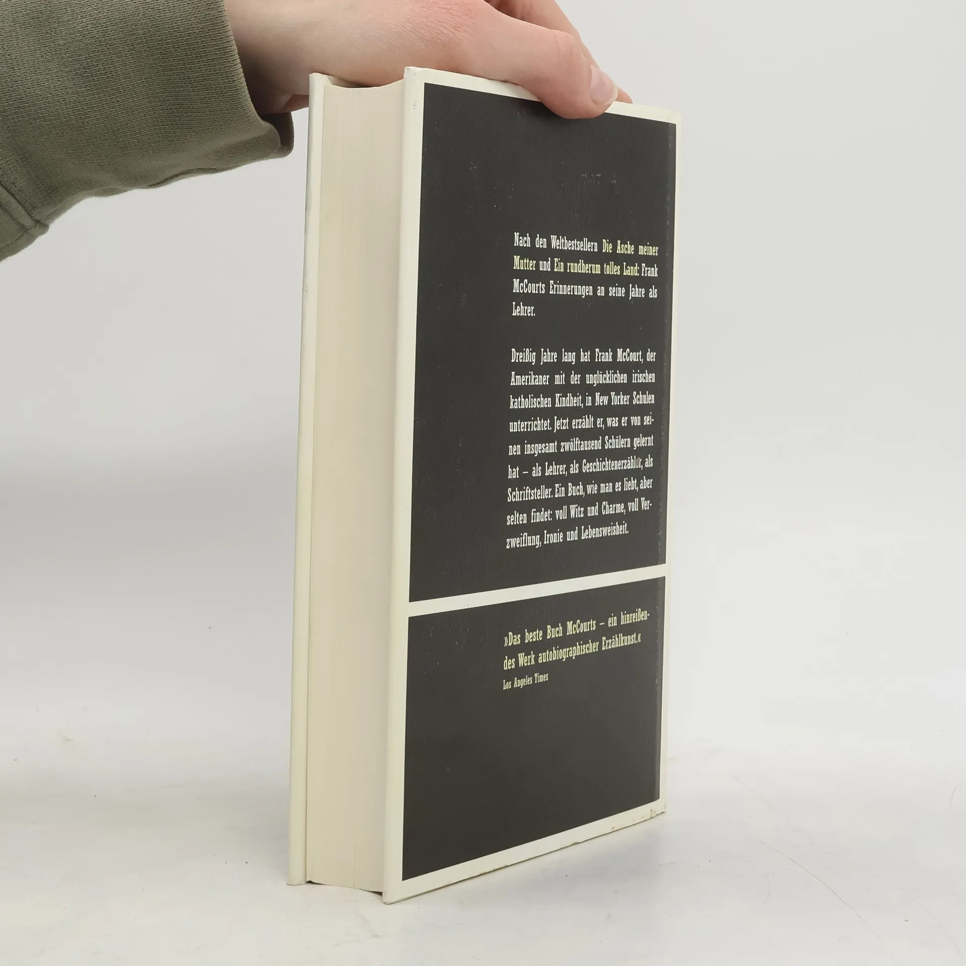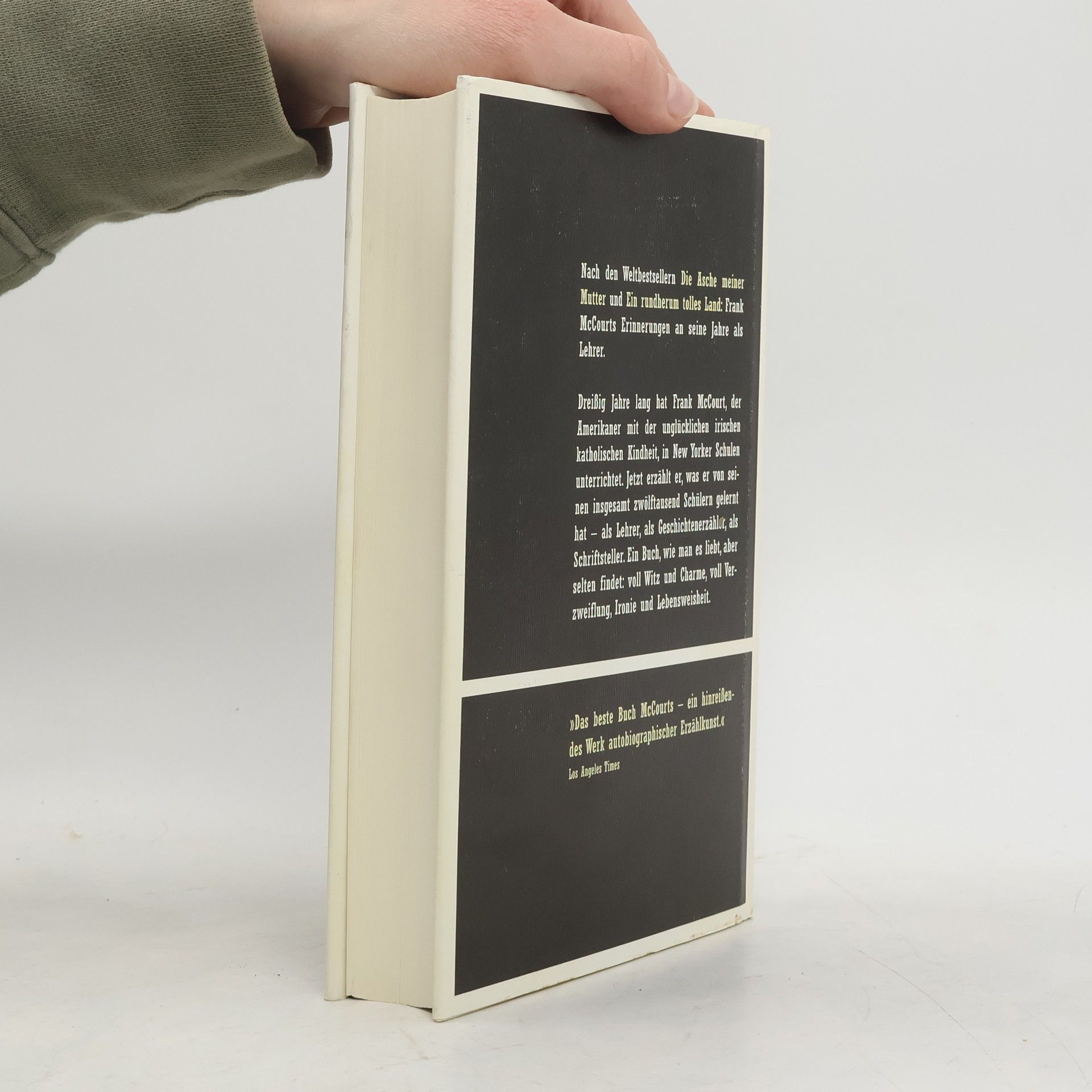 Nach äDie Asche meiner Mutterä und äEin rundherum tolles Landä der abschliessende Band der Lebenserinnerungen des irisch-amerikanischen Autors. Er schildert seine Erfahrungen in 30 Jahren als Lehrer an New Yorker Schulen und wie er letztendlich zum international erfolgreichen Schriftsteller wurde.