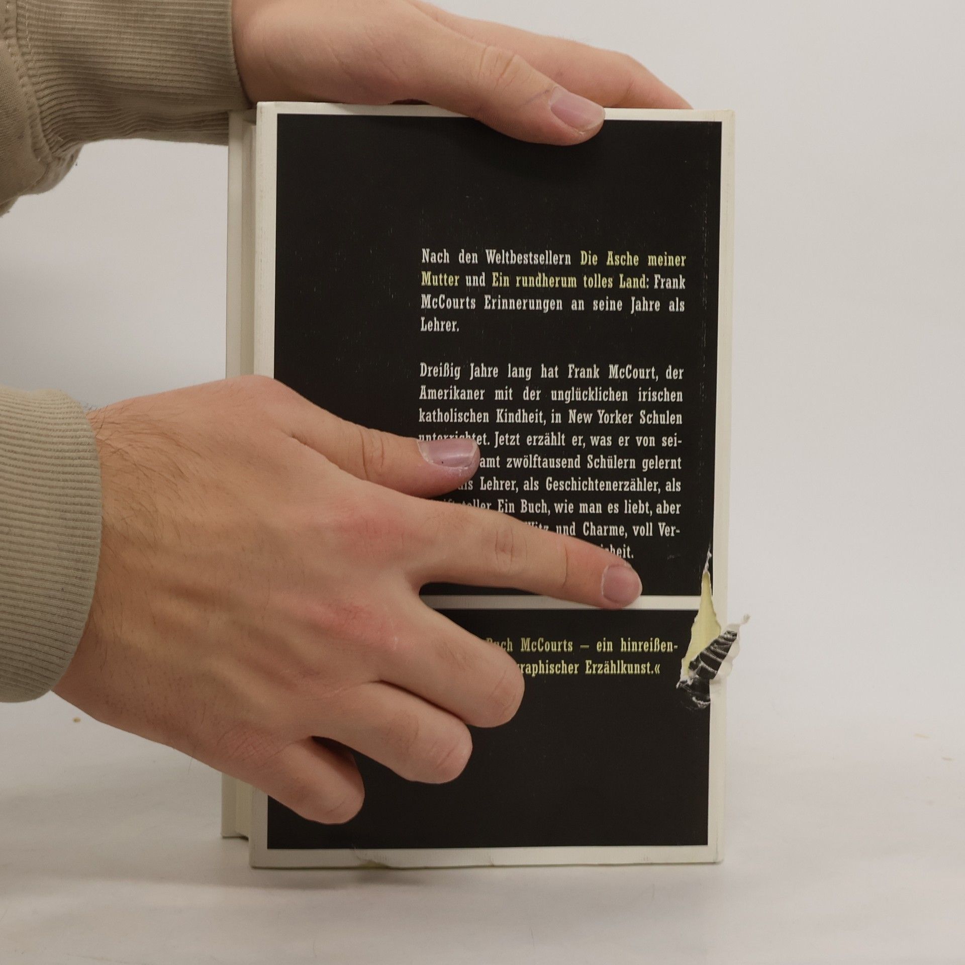 Nach äDie Asche meiner Mutterä und äEin rundherum tolles Landä der abschliessende Band der Lebenserinnerungen des irisch-amerikanischen Autors. Er schildert seine Erfahrungen in 30 Jahren als Lehrer an New Yorker Schulen und wie er letztendlich zum international erfolgreichen Schriftsteller wurde.