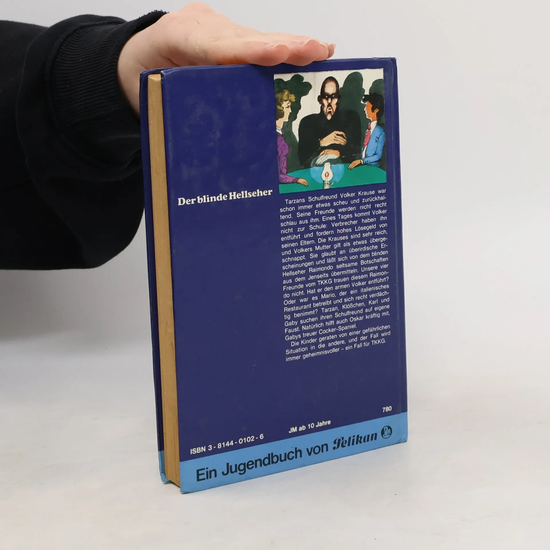 Tarzans Schulfreund Volker Krause war schon immer etwas scheu und zurückhaltend. Seine Freunde werden nicht recht schlau aus ihm. Eines Tages kommt Volker nicht zur Schule: Verbrecher haben ihn entführt und fordern hohes Lösegeld von seinen Eltern. Die Krauses sind sehr reich, und Volkers Mutter gilt als etwas übergeschnappt. Sie glaubt an überirdische Erscheinungen und lässt sich von dem blinden Hellseher Raimondo seltsame Botschaften aus dem Jenseits übermitteln. Unsere vier Freunde vom TKKG trauen diesem Raimondo nicht. Hat er den armen Volker entführt? Oder war es Mario, der ein italienisches Restaurant betreibt und sich recht verdächtigt benimmt? Tarzan, Klößchen, Karl und Gaby suchen ihren Schulfreund auf eigene Faust. Natürlich hilft auch Oskar kräftig mit, Gabys treuer Cocker-Spaniel. Die Kinder geraten von einer gefährlichen Situation in die andere, und der Fall wird immer geheimnisvoller...