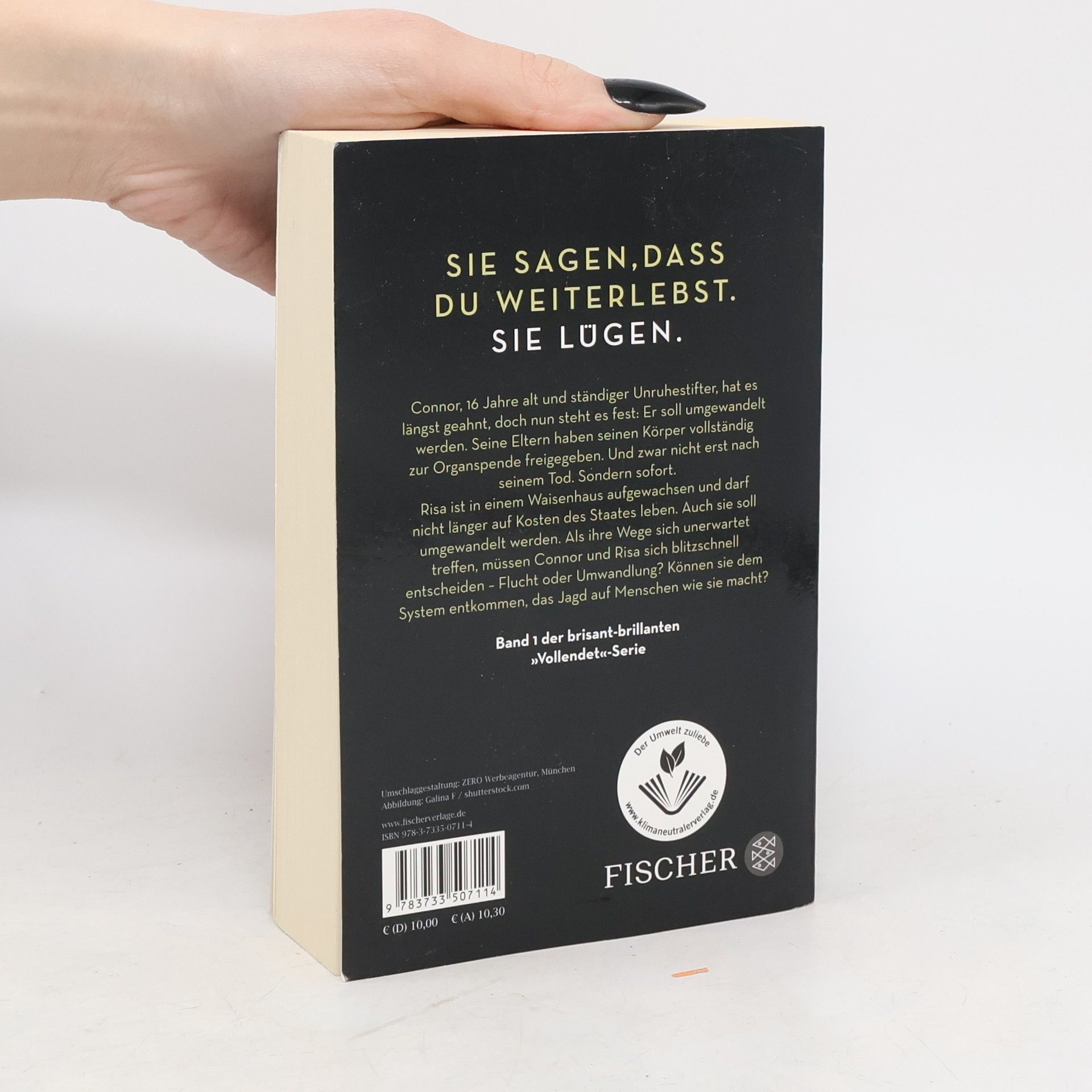 Sie sagen, dass du weiterlebst. Sie lügen. Connor, 16 Jahre alt und ständiger Unruhestifter, hat es längst geahnt, doch nun steht es fest: Er soll umgewandelt werden. Seine Eltern haben seinen Körper vollständig zur Organspende freigegeben. Und zwar nicht erst nach seinem Tod. Sondern sofort. Risa ist in einem Waisenhaus aufgewachsen und darf nicht länger auf Kosten des Staates leben. Auch sie soll umgewandelt werden. Als ihre Wege sich unerwartet treffen, müssen Connor und Risa sich blitzschnell entscheiden – Flucht oder Umwandlung? Können sie dem System entkommen, das Jagd auf Menschen wie sie macht? Band 1 der brisant-brillanten »Vollendet«-Serie