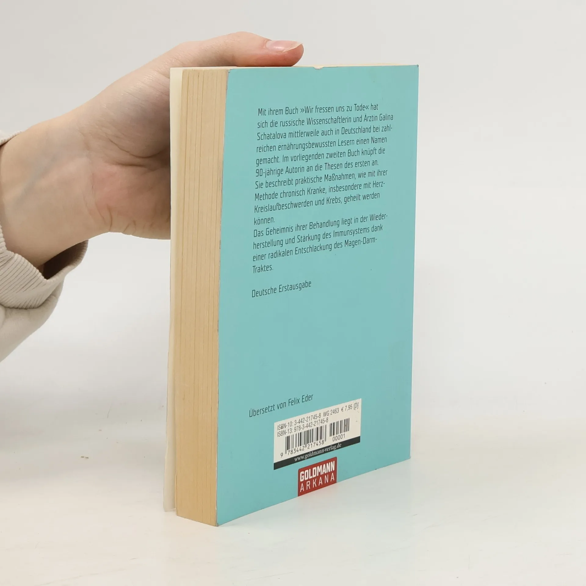 Dieses neue Buch der inzwischen knapp 90-jährigen russischen Wissenschaftlerin und Ärztin Galina Schatalova knüpft an die Thesen des erfolgreichen ersten („Wir fressen uns zu Tode“, Arkana TB 14222) an. Galina Schatalova beschreibt, wie chronisch Kranke, insbesondere mit Herz-Kreislaufbeschwerden und Krebs, durch Stärkung des Immunsystems und Entschlackung geheilt werden können.