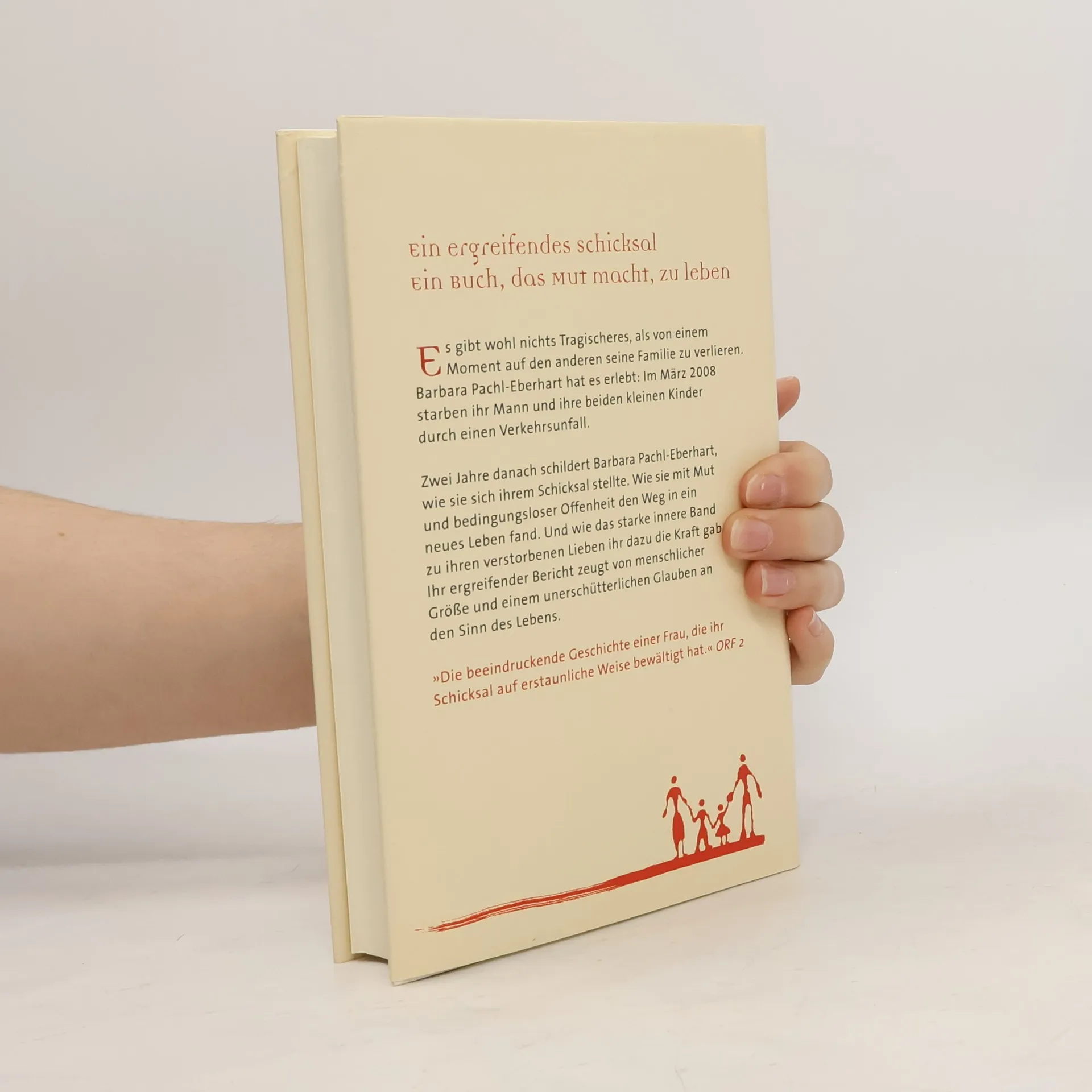 Ein Schicksal, das erschüttert – und dennoch Mut macht, zu leben Wie schafft es eine Frau, die ihren Mann und ihre beiden kleinen Kinder durch einen Verkehrsunfall verliert, überhaupt weiterzuleben? Fünf Tage nach dem schrecklichen Ereignis schreibt Barbara Pachl-Eberhart einen offenen Brief an ihre Verwandten und Freunde, der in beeindruckender Intensität ihre Gefühle darlegt. Rasch findet das erschütternde Dokument durch Internet, Zeitungen und Zeitschriften eine große Verbreitung. Die Tragödie dieser Familie bewegt Tausende Menschen. Zwei Jahre nach dem tragischen Ereignis schildert Barbara Pachl-Eberhart nun ihren Weg in ein neues Leben. Die Offenheit, mit der sie sich ihrem Schicksal stellt, und der Mut, mit dem sie Schritt für Schritt in eine unbekannte Zukunft geht, zeugen auf ergreifende Weise von menschlicher Größe und einem unerschütterlichen Glauben an den Sinn des Lebens. Die Autorin wurde 2009 mit dem wichtigsten österreichischen Frauenpreis, dem „Leading Ladies Award“, ausgezeichnet.