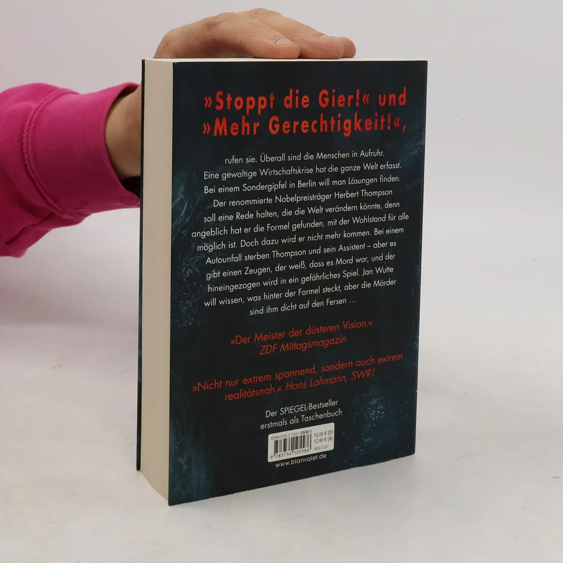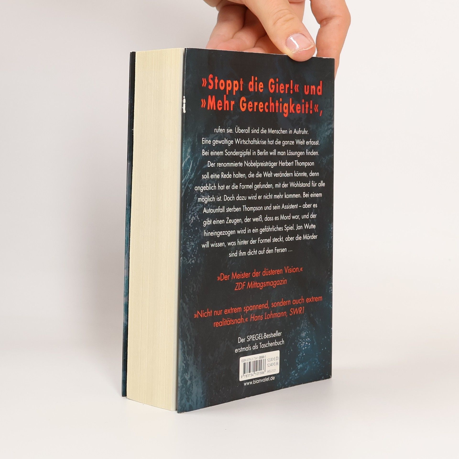 Höher, schneller, weiter ... Bis eine gewaltige Krise alles infrage stellt! Ein rasanter Thriller, der den Finger auf den wunden Punkt unserer Gesellschaft legt. Auf der ganzen Welt fordern die Menschen Gerechtigkeit und ein Ende der Gier. Bei einem Sondergipfel in Berlin soll Nobelpreisträger Herbert Thompson eine bahnbrechende Rede halten, die den Schlüssel zu Wohlstand für alle verspricht. Doch ein Autounfall beendet sein Leben und das seines Assistenten. Ein Zeuge weiß, dass es Mord war und wird in ein gefährliches Spiel verwickelt. Jan Wutte ist entschlossen, die Wahrheit hinter der Formel zu entdecken, während die Mörder ihm dicht auf den Fersen sind. Die Geschichte entfaltet sich in einer rasanten Flucht durch die Berliner Hausbesetzer-Szene und Nobelhotels, die den Leser über 448 Seiten fesselt. Die komplexe Wirtschaftstheorie des britischen Wissenschaftlers wird in eine einfache Bauernfabel verpackt, was die Spannung zusätzlich erhöht. Lesen Sie auch den aktuellen Thriller von Marc Elsberg: °C - Celsius! Ein Klimathriller, der alles auf den Kopf stellt. Außerdem erhältlich: BLACKOUT. Morgen ist es zu spät. Auch als Premiumausgabe – mit einer exklusiven Kurzgeschichte von Marc Elsberg und weiteren Extras! ZERO. Sie wissen, was du tust. HELIX: Sie werden uns ersetzen. Der Fall des Präsidenten.